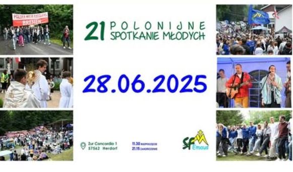W sobotę 24 czerwca w „Haus Concordia” (Niemcy) odbyło się XIX Polonijne Spotkanie Młodych. Wzięło w nim udział ok. 3 tys. młodych Polaków z Niemiec, Holandii i Belgii. Gościem wydarzenia był delegat Konferencji Episkopatu Polski ds. Duszpasterstwa Emigracji Polskiej bp Piotr Turzyński. Jak podkreślił, w wydarzeniu biorą udział nie tylko młodzi Polacy, ale też ich rodziny. „Klimat jest niezwykły. To jest wyjątkowe spotkanie w wyjątkowym miejscu” – powiedział delegat.