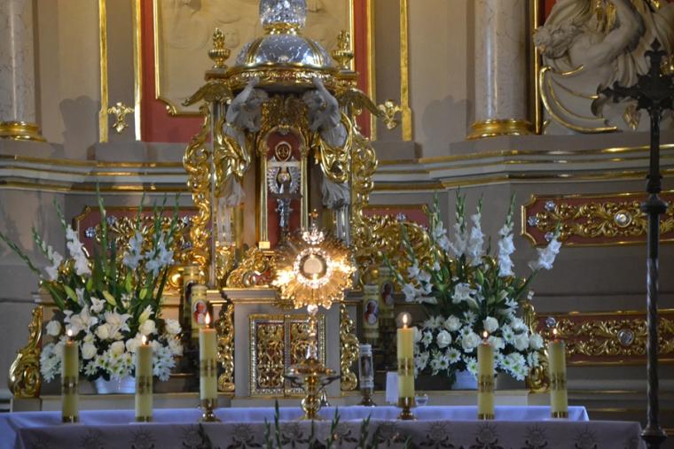 Piękny i bogaty w wydarzenia duchowe był dzień 28. września. To w mikstackiej wspólnocie parafialnej dzień adoracji Najświętszego Sakrament. Jest to czas szczególnej łaski, spotkania z Jezusem ukrytym pod postacią Chleba. W tym roku ten dzień przypadł w sobotę, dzień poświęcony Matce Bożej. W każdą sobotę w naszej wspólnocie odprawiana jest nowenna do Matki Bożej Nieustającej Pomocy. Tak stało się i sobotni poranek 28 września. Tym razem zostało ono jednak odprawione nie przed obrazem Matki Bożej Nieustającej Pomocy, ale przed wystawionym Najświętszym Sakramentem. Modlitwie przewodniczył ks. kan. Krzysztof Ordziniak, który w rozważaniu skierowanym do zebranych w parafialnym wieczerniku przywołał słowa z Ewangelii: „Weźcie wy sobie dobrze do serca te właśnie słowa: Syn Człowieczy będzie wydany w ręce ludzi”. Podkreślił, że każdy z nas jest przez Boga kochany, jest dla Niego kimś wyjątkowym. Kapłan zachęcał, by każdy w cichości swego serca wypowiedział prośbę czy podziękowanie z jakim przyszedł dziś do kościoła. Zaznaczył, że Jezus nie odmawia prośbom swej Matki, stąd powinniśmy z ufnością powierzać je Maryi. Po zakończonej nowennie rozpoczął się czas spotkania z Jezusem ukrytym w Najświętszym Sakramencie. Dodajmy, że mikstacki kościół jest otwarty codziennie od rana do wieczora. Jest więc wiele okazji, by do niego wstąpić na chwilę rozmowy, modlitwy z Jezusem ukrytym w tabernakulum. W dniu adoracji znacznie liczniej korzystaliśmy z okazji do spotkania z naszym Panem. Była wspólna modlitwa, ale i czas na indywidualną rozmowę, trwanie przy Jezusie w ciszy. Bo to właśnie w ciszy najłatwiej usłyszeć głos mówiącego do nas Boga. Tak brakuje tych chwil ciszy, zatrzymania się współczesnemu człowiekowi.