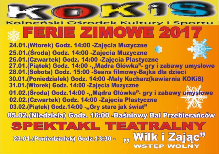 Wraz z rozpoczęciem ferii zimowych przez dzieci z województwa podlaskiego Kolneński Ośrodek Kultury i Sportu przygotował bogatą ofertę. Organizatorzy mają nadzieję,że w ten sposób najmłodsi spędzą miło i aktywnie swój wolny czas.