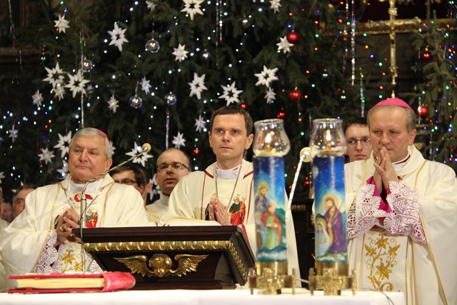 Mszy św. przewodniczył bp Mirosław Milewski, biskup pomocniczy diecezji płockiej. Wraz z nim modlili się: biskup kaliski Edward Janiak, biskup pomocniczy Łukasz Buzun, bp senior Stanisław Napierała, bp senior Teofil Wilski, o. Tadeusz Rydzyk, kilkudziesięciu kapłanów, wierni z diecezji kaliskiej, a szczególnie dekanatów kaliskiego pierwszego, ostrowskiego pierwszego i opatóweckiego oraz osoby konsekrowane z diecezji kaliskiej i pielgrzymi z całej Polski. W homilii bp Milewski dziękował osobom konsekrowanym za gorliwą służbę w Kościele. - Dziś dziękujemy tym zastępom Waszych współbraci i Was za świadectwo życia zakonnego. Nie byłoby roku 1918, ale też nie byłoby roku 1989, gdyby nie Wasza mrówcza, mozolna, ukryta, a nierzadko szykanowana przez władze PRL praca u podstaw, z najbardziej tego potrzebującymi. W dzieło misji prorockiej wpisały się przez wiele wieków dziesiątki tysięcy zakonników, idących z posługą słowa. Od pierwszych benedyktynów, którzy przynieśli tak wielu z naszych przodków chrzest, przez franciszkanów i dominikanów, tłumaczących zawiłości wiary, jezuitów i redemptorystów – mistrzów słowa i jego przekazu, aż po salezjanów, pracujących cierpliwie z młodzieżą – podkreślał hierarcha. Wskazywał też na rolę, jaką w Polsce odgrywają media katolickie, szczególnie Radio Maryja i Telewizja Trwam. - O ile trudniej byłoby dzisiaj w Polsce mówić o Bogu i Jego Kościele, gdyby nie wkład tych właśnie mediów w tak bardzo zróżnicowany polski rynek radiowo-telewizyjny. O ile trudniej żyłoby się milionom Polaków, starszych i młodszych, pracujących i emerytów, gdyby nie wspólna modlitwa na tych antenach, katechezy, dyskusje, rozmowy niedokończone. O ile trudniej byłoby zrozumieć polską rzeczywistość, gdyby nie te – czasami bardzo wyraźne – znaki sprzeciwu – powiedział biskup pomocniczy diecezji płockiej. Zachęcał wiernych, aby prosili Boga o światło dla siebie i swoich najbliższych. - Z gromnicami w ręku, jak nasi ojcowie, przychodzimy w to dzisiejsze święto, aby prosić Boga o światło. Potrzebują tego światła nasze rodziny, tak bardzo zranione różnymi bolesnymi sytuacjami: brakiem dzieci, chorobami, rozwodami, zazdrością. Potrzebują go nasze szkoły, zwłaszcza katolickie, w dobie reorganizacji, by były miejscem wychowania i zdobywania wiedzy – zaznaczył celebrans. Prosił też o światło dla wspólnot diecezjalnych, parafialnych i lokalnych. - Potrzebują tego światła nasze parafie i diecezje, a zwłaszcza seminaria duchowne i nowicjaty zakonne, gdzie czasem płomień zapału przygasa i woła o nowych, młodych, którzy wezmą do ręki tę pochodnię Kościoła. Potrzebują tego światła nasze lokalne wspólnoty, nasze „małe ojczyzny”, bo czasem nazbyt mocno zapanowały tam ciemności. Potrzebują tego światła katolickie media, by jego blask zadziwiał ludzi i przyciągał do wiary i zaufania Bogu. Potrzebuje tego światła każdy z nas, by „światłość w ciemności świeciła i ciemności jej nie ogarnęły” – mówił bp Milewski.