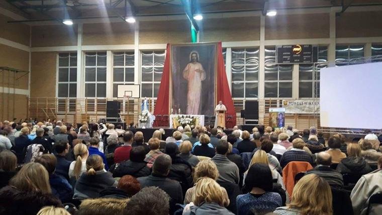 „Szkoła modlitwy” odbyła się na hali sportowej Zespołu Szkół w Sokółce. Jej organizatorem była wspólnota „Przyjaciele Oblubieńca” przy parafii pw. św. Antoniego Padewskiego w Sokółce, którą prowadzi ks. Michał Urban.