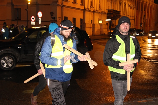 Ekstremalna Droga Krzyżowa to pokonanie wybranej trasy w nocy, medytowanie i zmaganie się z własnymi słabościami. W trakcie długiej, ponad 40-kilometrowej wyprawy uczestnicy mają czas na refleksję i spotkanie z Panem Bogiem. - Postanowiłam przejść tę drogę krzyżową w pewnej intencji. Jak nie dam rady to wrócę. Nie założyłam sobie, że dojdę do samego końca. Pójdę tyle ile zdołam – powiedziała Maria licząca 63 lata. Na trasie można spotkać wiele małżeństw. – Idziemy z intencjami, które mamy zachowane w sercu. To one nas napędzają, aby dojść do celu. Poza tym będzie to też takie sprawdzenie siebie czy jesteśmy zdolni taką trasę pokonać – mówili Aneta i Andrzej. W drodze krzyżowej zdążają kapłani i siostry zakonne. – Pójście na drogę krzyżową to przede wszystkim pragnienie serca. Wiele ludzi prosi o modlitwę w różnych intencjach. Będę polecać także dzieci, z którymi pracuję, ponieważ ich rodziny potrzebują dużego wsparcia modlitewnego. Myślę, że z Panem Jezusem uda się dojść do końca. Kiedy podjęłam decyzję to powiedziałam „Panie Jezu idziemy” - podkreśla s. Ewa ze Zgromadzenia Sióstr Franciszkanek Rodziny Maryi z Mikstatu. W EDK bierze udział dużo młodzieży. – Chodzę w Pieszych Pielgrzymkach na Jasną Górę, a dziś postanowiłam spróbować sił w tym wydarzeniu. Udział w drodze krzyżowej to dla mnie umocnienie duchowe, a poza tym idę ze swoją intencją – zaznaczyła 19-letnia Agnieszka Kowalczyk z Doruchowa. Motywacje uczestnictwa w drodze krzyżowej są różne, ale najczęściej jest to modlitwa za chorych, uzależnionych i wielu innych intencjach. – W poniedziałek uczestniczyłem w drodze krzyżowej w intencji trzeźwości z Kępna do Grębanina. W każdej rodzinie są chorzy, nadużywający alkoholu, zmagający się z różnymi nałogami. Będę polecać te osoby Jezusowi w czasie tej drogi krzyżowej i wierzę, że na pewno będzie z tego jakieś dobro – stwierdził Władysław Gąsiorek z Komorowa liczący 54 lata. - Nigdy nie szedłem z pielgrzymką, bo od dłuższego czasu musiałem opiekować się dziećmi, a zajmowanie się rodziną pochłania dużo czasu. Dzisiaj przez jedną noc można przejść 40 kilometrów. To jest takie duże wyzwanie dla Pana Boga. To jest też takie mierzenie się ze sobą. Często mierzę się w życiu ze swoimi słabościami na przestrzeni przezwyciężania grzechu, a czasami nawet upadku. Forma tej drogi krzyżowej to właśnie takie zmaganie się z własnymi słabościami i umocnienie duchowe – powiedział Jacek Makowski.