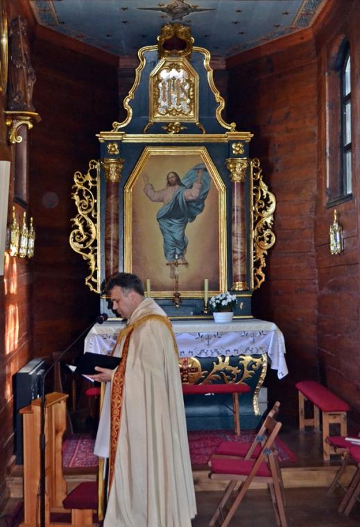 Nabożeństwo poprowadził w sanktuarium ks. kan. Krzysztof Ordziniak, który przewodniczył modlitwie oraz odczytywał poszczególne rozważania spotkań. Podczas nabożeństwa zapalony był paschał, od którego przy rozważaniu kolejnego spotkania odpalana była świeczka.