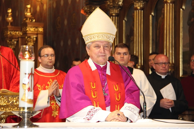 W homilii biskup kaliski przywoływał słowa papieża Jana Pawła II z każdej pielgrzymki do Polski.