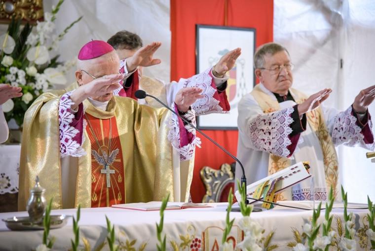 Uroczystej sumie odpustowej, która sprawna była o godz. 11:00 przewodniczył ks. bp Senior Teofil Wilski. Przy ołtarzu wraz z ks. biskupem stanął pochodzący z mikstackiej parafii ks. kan. Zbigniew Mielcarek, który dziękował Bogu za 40 lat kapłaństwa.