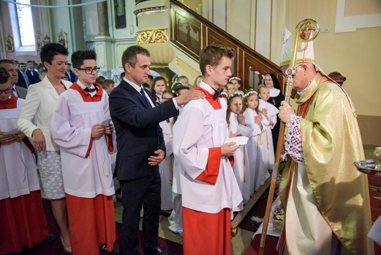 Słowa podziękowania dla ks. biskupa wypowiedzieli przedstawiciele młodzieży, która przyjęła Sakrament Bierzmowania oraz ich rodziców. Słowa podziękowania za trud przygotowania młodzieży do przyjęcia sakramentu dojrzałości chrześcijańskiej skierował do ks. Krzysztofa Lipińskiego ks. Bp Teofil oraz ks. proboszcz.