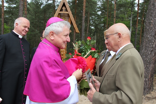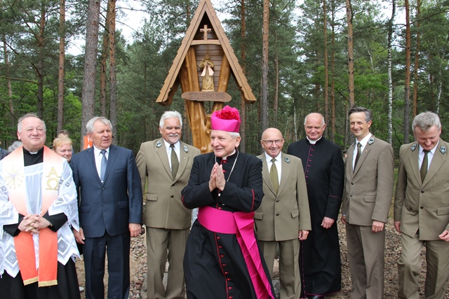 Biskup kaliski Edward Janiak poświęcił w lesie kapliczkę z figurą Jezusa Miłosiernego, którą ufundował odchodzący na emeryturę leśniczy leśnictwa Kazala w Nadleśnictwie Kalisz.
