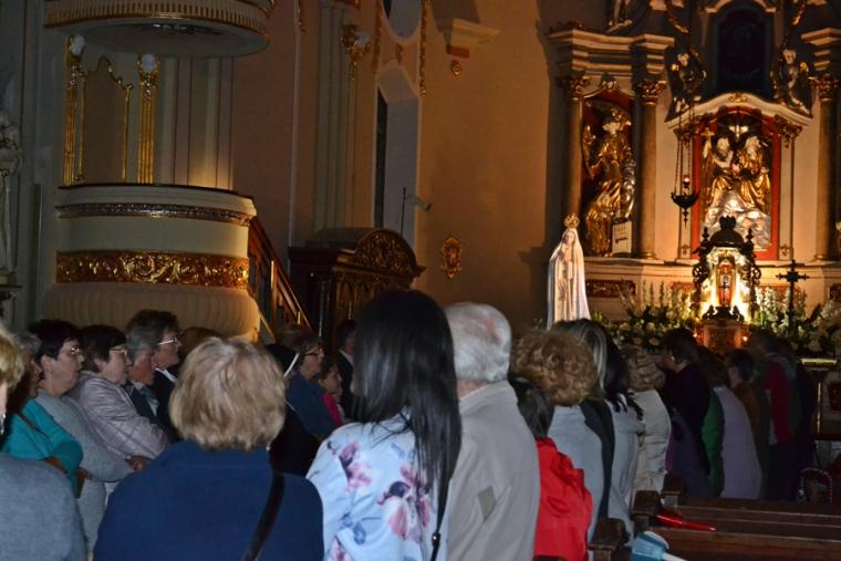 „ My zgromadzeni na nabożeństwie fatimskim odmawiamy różaniec, śpiewamy pieśni maryjne, prosimy Maryję o wstawiennictwo u Trójjedynego Boga we wszystkich naszych potrzebach. Tym samym jesteśmy wspólnotą, której celem jest sam Bóg”- powiedział do wiernych ks. kan. Krzysztof Ordzianiak