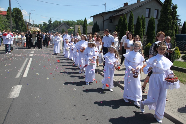 Po Mszy św. wyruszyła procesja do czterech ołtarzy, którą prowadził bp Stanisław Napierała. Przy czwartym ołtarzu na placu Wolności biskup udzielił błogosławieństwa Najświętszym Sakramentem na cztery strony świata.