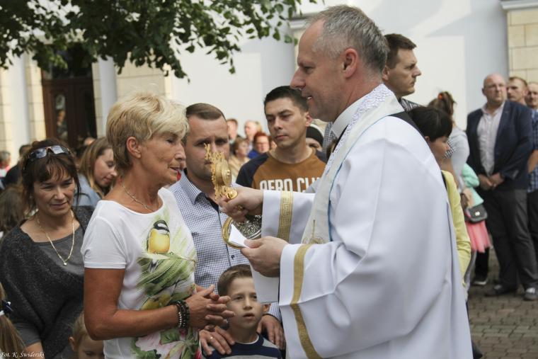 Suma odpustowa o godz. 11.00 była czasem pielgrzymki rolników i pszczelarzy. Mszy Świętej przewodniczył i homilię wygłosił JE. ks. bp Stanisław Salaterski. Homilię rozpoczął od stwierdzenia za Janem Pawłem II, że wymagania Ewangelii są trudne. Jej wypełnienie to nie tylko słowa, ale życie zgodne z jej hierarchią wartości. Powinniśmy tak gospodarować dobrami naturalnymi, aby następne pokolenia także mogły z nich korzystać. Troska o świat musi być też troską o ludzi. W siódmy dzień powinniśmy dbać o nasze sumienie. Wiele ludzi uważa, że dawniej bardziej pielęgnowało relację z Bogiem i owoce pracy były lepsze. Nasza troska o chleb musi być roztropna, bo to Bóg darzy nas swoim błogosławieństwem. Na darmo wstawać o północy, jeżeli Pańskiej nie będzie pomocy. Trzeba darzyć miłością i szacunkiem przodków, a także własną pracę, ponieważ gdy zabraknie serca i szacunku, tam gdzie zboże rosło będzie las. Matka Boża uczy nas wrażliwości na drugiego człowieka i na pracę, a także pomocy, zaradności i zatroskania. Taka postawa potrzebna jest nam wszystkim. Swoją homilię zakończył mówiąc, że gdy sercem wypełnimy naszą codzienność, będzie ona chwałą Boga.