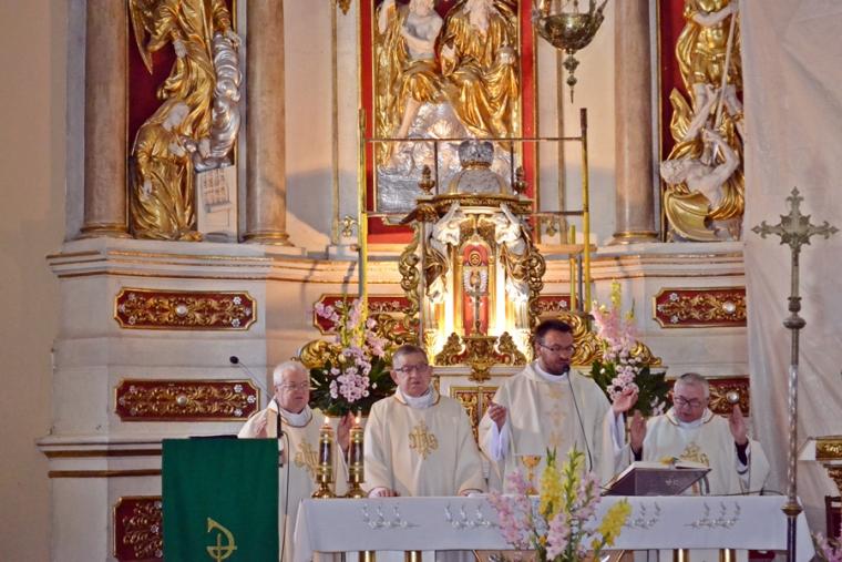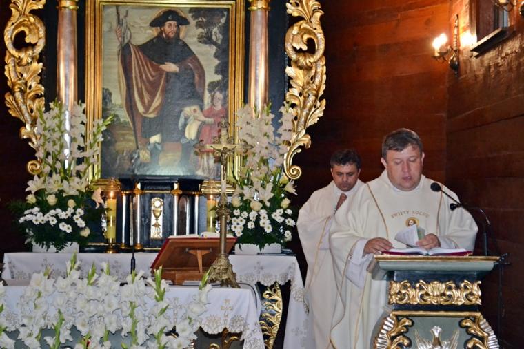 O tym, że aby dobrze przeżyć ważne uroczystości i święta trzeba się do nich przygotować mówił na początku drugiej nauki rekolekcyjnej wygłoszonej podczas Mszy Świętej sprawowanej  o godz. 18:30  w sanktuarium ks. kan. Bogumił Kempa. Wraz z nim Eucharystię sprawował kustosz miejsca, ks. kan. Krzysztof  Ordziniak. Przed Mszą św. odmówiona została Koronka do Bożego Miłosierdzia oraz odśpiewane Godzinki o św. Rochu Wyznawcy. Poruszyła zapewne serca i sumienia wielu zgromadzonych w sanktuarium nauka wygłoszona przez ks. kan. Bogumiła. Podkreślił w niej, że dobre przeżycie odpustu wymaga przede wszystkim przemiany serc. Nawiązując do czytań mszalnych skoncentrował rozważanie na grzechu obmowy. Podkreślił, że ma on długą  historię, a my ludzie mamy wyjątkowa zdolność do obmowy. Zaakcentował, że obmowa jest grzechem ciężkim i zachęcił do refleksji, czy się z tego grzechu spowiadamy. Kaznodzieja zwrócił uwagę, że wielokrotnie usprawiedliwiamy grzech obmowy, w złym celu wykorzystujemy język. Kontynuując rozważanie ks. kan. Bogumił powiedział: „ Język to jest takie urządzenie, które  dał nam Pan Bóg dla bardzo konkretnego dobra, żebyśmy mogli ze sobą rozmawiać, żebyśmy mogli się komunikować. A my wykorzystujemy go do grzechu,  a to przecież na język przyjmujemy Eucharystię”. Kaznodzieja podkreślił, że  słowa, które wypowiadamy, są często przyczyną zła dziejącego się wokół nas. Zwrócił naszą uwagę na to, że papież Franciszek mówi często o grzechu plotkowania, wskazując nam kierunek pracy nad sobą. Nawiązując do życia św. Rocha, który także został niesłusznie oskarżony, obmówiony,  niesprawiedliwie, niesłusznie osadzony w więzieniu zwrócił uwagę na cierpienie, które związane jest z grzechem obmowy. Zaakcentował, że „Grzech obmowy zawsze wiąże się z wielkim cierpieniem” . Wskazał, że obmawiając innych często nie zdajemy sobie sprawy z tego, że niszczymy  czyjeś życie. Kaznodzieja podkreślił, że wokół nas jest wiele dobra i zachęcał byśmy potrafili się ucieszyć dobrem doświadczanym przez innych ludzi. Czy jest w nas, w tym co mówimy chrześcijańska miłość, czy potrafimy patrzeć na drugiego człowieka z miłością - to pytania do postawienia, których zachęcał nas rekolekcjonista. Mamy często problem z pojednaniem, przebaczeniem, a ich brak nas niszczy. Przeywamy czas ćwiczeń duchowych, więc i ta nauka zakończona była zadaniem. Tym razem ks. kan. Bogumił zachęcał nas: „ Powiedz coś dobrego osobie, którą najbardziej kochasz”. Słowa ks. kan. Bogumiła zapewne wielu skłoniły do refleksji, zadumy, rachunku sumienia. Miejmy nadzieję, że dzięki tej nauce będziemy w  lepszy sposób korzystać z daru  języka i słowa.