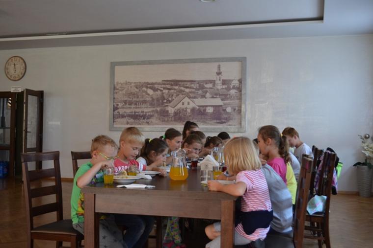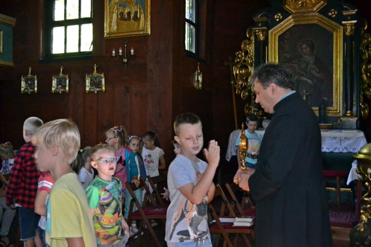 O godz. 10:00 w Diecezjalnym Sanktuarium św. Rocha zebrali się uczestnicy spotkań w „Rochowej Szkole”. Rozpoczęło się ono wspólną modlitwą. Następnie ks. kan. Krzysztof Ordziniak, przybliżył młodym Mikstaczanom postać św. Rocha. Swoją uwagę skoncentrował na wskazaniach, które pozostawił mu ojciec przed śmiercią, bo  mimo upływu setek lat są one nadal aktualne. Czego dotyczyły? – miłości Boga i bliźniego. Następnie ks. kan. poprowadził modlitwę nowennową. Włączone w nią zostały prośby i podziękowania wypisane na karteczkach przez uczestników spotkań w Szkole Świętego Rocha. Młodzi Mikstaczanie uczcili relikwie św. Rocha i wyruszyli na pielgrzymi szlak. Niedaleko, bo do salki kominkowej. Po drodze zatrzymali się przy zabytkowym krzyżu autorstwa Pawła Brylińskiego. W salce kominkowej odbyły się zajęcia plastyczne. Młodzi malowali kubki. Najpierw na kartkach papieru przygotowali projekt. Okazało się, że nie brakuje im fantazji i plastycznego talentu. Spotkanie zakończyli wspólnym posiłkiem w restauracji „Zielone Wzgórze”.