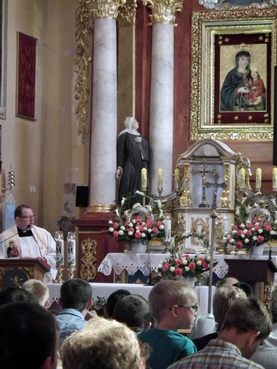 Gwarno zrobiło się wokół sanktuarium około godz. 16:00. Na tę godzinę do Matki Bożej Pocieszenia zostały w sposób szczególny zaproszone rodziny z dziećmi. „Pozwólcie dzieciom przychodzić do Mnie, nie przeszkadzajcie im…” powiedział Pan Jezus do apostołów. Nie zabraniali, nie przeszkadzali w przyjściu do Jezusa licznie zebranym u Lutogniewskiej Pani dzieciom rodzice. Przyszli z nimi, przyprowadzili je, przynieśli na rękach, przywieźli w wózkach, by mogły otrzymać indywidualne błogosławieństwo. Mszy św. w intencji rodzin przewodniczył ks. dr Jarosław Powąska. Potem wszystkim dzieciom i tym maleńkim i tym większym kapłani udzielili indywidualnego błogosławieństwa. Nie zabrakło niespodzianki dla najmłodszych czcicieli Matki Bożej Pocieszenia. Radowało się serce kustosza sanktuarium tak licznym udziałem rodzin w uroczystościach odpustowych. Rodzice i dziadkowi, którzy przybyli do Lutogniewskiej Matki z najmłodszymi dali piękne świadectwo wiary i zaufania Matce i Jego Synowi.” Słowa uczą, ale przykład pociąga…”. Można więc mieć nadzieję, że rośnie kolejne pokolenie czcicieli Matki Boże Pocieszenia z Lutogniewa.
