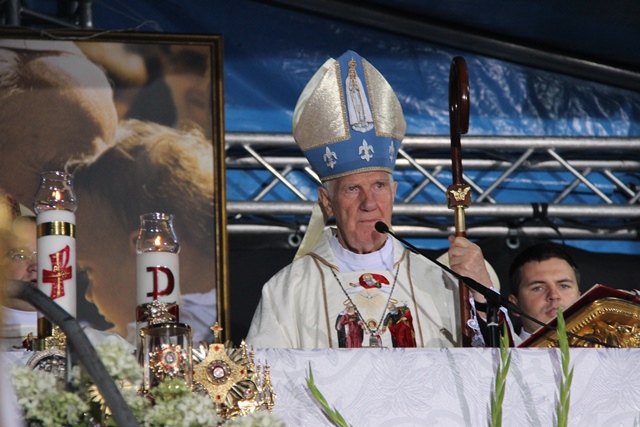 W homilii celebrans wskazywał, że właśnie w Kaliszu w 1997 r. Jezus Chrystus ustami papieża św. Jana Pawła II upomniał się o Ewangelię Życia, tak dzisiaj poniewieraną i zwalczaną w świece, szczególnie w Europie, a nawet w Polsce.