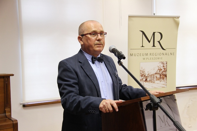 Wydania okazałej publikacji gratulowali: Arkadiusz Ptak, zastępca burmistrza Miasta i Gminy Pleszew oraz prowadzący spotkanie Adam Staszak, dyrektor Muzeum Regionalnego w Pleszewie.