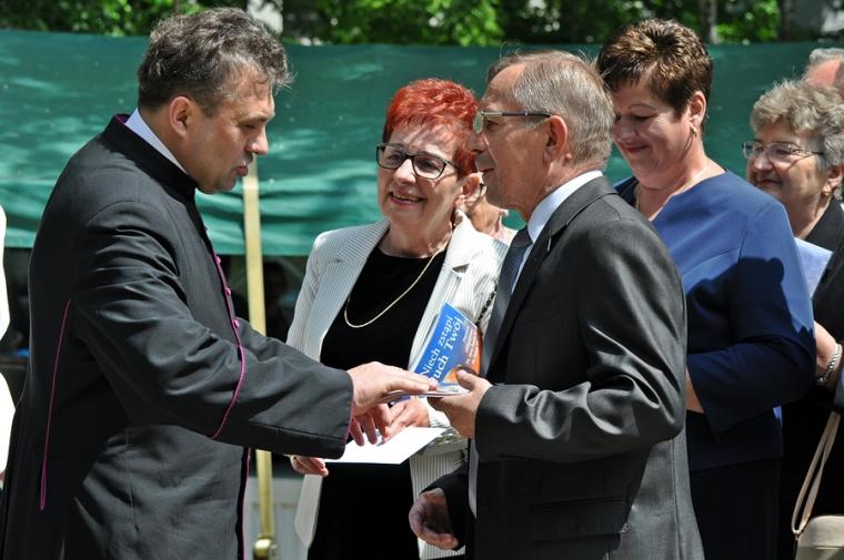 Po dziękczynieniu Panu Bogu nadszedł czas na radosne spotkanie w Parku Świętego Rocha. Dlaczego tam? Wielkim pragnieniem księdza Jubilata było spotkanie się przy stole ze wszystkimi uczestnikami dziękczynnej Eucharystii. Żadna sala nie byłaby w stanie pomieścić wszystkich tych, którzy w tym wyjątkowym dniu ofiarowali ks. Jubilatowi najcenniejszy dar – modlitwę.
