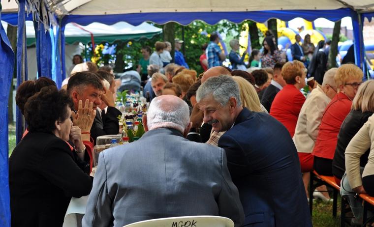 Po mszy świętej jej uczestnicy wraz z Jubilatem przy dźwiękach orkiestry z Chełmc przeszli do parku. Tu wielu gości złożyło ks. kan. Krzysztofowi życzenia. Wiele życzliwych słów padło pod adresem ks. Jubilata. Składający życzenia zostali obdarowani przez ks. kan. Krzysztofa albumem z homiliami i przemówieniami Ojca świętego Jana Pawła II z pierwszej pielgrzymki do Polski, pamiątkowym obrazkiem i płytą z filmem „Czekając na motyle”. Potem przyszedł czas na konsumpcję przepysznych potraw, rozmowy i wspomnienia. Podczas biesiadowania przygrywała wspomniana już orkiestra z Chełmc i zespół muzyczny. Ks. Jubilat nie zapomniał o swoich najmłodszych gościach. Dzieci chętnie korzystały ze zjeżdżalni i dmuchanego placu zabaw. Wielu gości spędziło czas na rozmowach spacerując parkowymi alejkami.