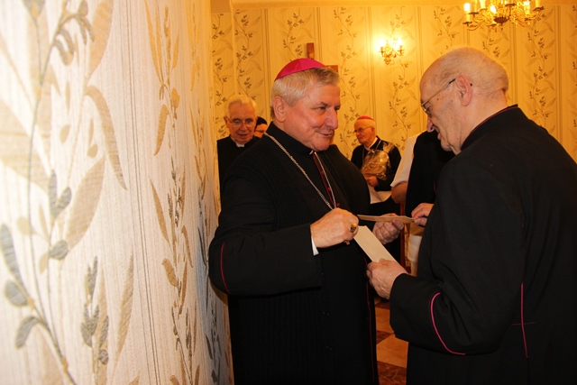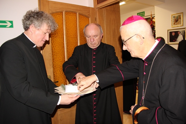 W spotkaniu opłatkowym uczestniczyli też biskup pomocniczy Łukasz Buzun, biskupi seniorzy Stanisław Napierała i Teofil Wilski oraz dyrektor domu ks. prał. Jan Wolniak.