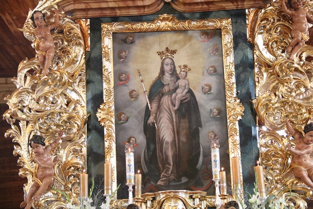 Obraz Matki Bożej Pólkowskiej datowany jest na lata 1630-1640. Początkowo znajdował się w małym kościółku, w tym samym miejscu, gdzie dzisiaj jest ogromna świątynia drewniana z 1711 r. Z dokumentacji znajdującej się w archiwum parafialnym odnoszącej się do okresu pochodzenia Obrazu Pólkowskiego wynika, iż badania przeprowadzone w 1966 r. przez pracownię konserwatorską Księgarni św. Wojciecha w Poznaniu potwierdzają wiek jego pochodzenia. Obraz Matki Bożej z Dzieciątkiem namalowany został techniką olejną na płótnie naklejonym na deskę.