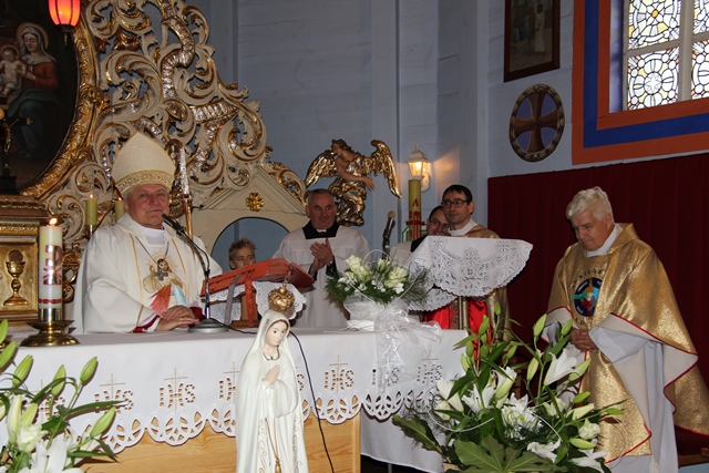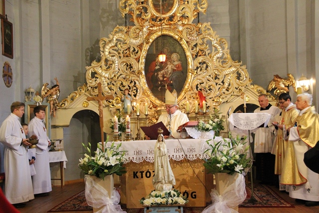 Wraz z biskupem kaliskim Edwardem Janiakiem Mszę św. koncelebrowali: ks. prał. Józef Nowacki, emerytowany proboszcz parafii pw. Zwiastowania NMP w Dębe i ks. dr Sławomir Kęszka, obecny proboszcz.