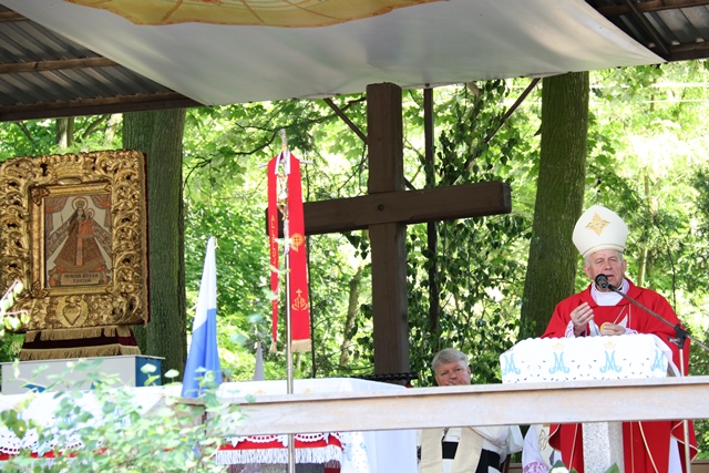 Dodał, że 50 lat temu, 1 września, kard. Stefan Wyszyński dokonał koronacji obrazu Matki Bożej Łaskawej. - Maryja upodobała sobie Tursko i chciała, aby było tutaj miejsce Jej szczególnej czci. Chciała tego Maryja i chciał tego Duch Święty. Zaczęły tutaj przybywać pielgrzymki, ludzie doznawali wstawiennictwa Maryi. Powstało Sanktuarium Matki Bożej Turskiej Łaskawej Pani. Cześć Maryi tutaj ciągle jest żywa – przekonywał pierwszy biskup kaliski