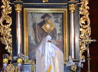 Przed zakończeniem Eucharystii Ksiądz Mateusz, Dyrektor Diecezjalnego Radia Rodzina  i Telewizji Internetowej Dom Józefa zachęcał uczestników modlitewnego spotkania zarówno tych zgromadzonych w sanktuarium i wokół niego, jak i łączących się z nami duchowo dzięki transmisji do korzystania z dostępnych mediów. Wielu z nas jest wiernymi słuchaczami audycji Radia Rodzina i widzami programów TV Dom  Józefa,  ale mamy nadzieją, że  radiowo- telewizyjna transmisja przyczyni się do powiększenia grona słuchaczy i widzów. Naprawdę warto, bo propozycji audycji radiowych i telewizyjnych jest wiele i są bardzo  różnorodne. Każdy może w nich znaleźć coś dla siebie. Ponadto ks. Mateusz przybliżył słuchaczom i widzom postać św. Rocha i specyfikę mikstackiego sanktuarium. Zwrócił uwagę, że dzięki transmisjom różnych uroczystości mamy okazję poznawać piękne kościoły i sanktuaria znajdujące się na terenie naszej diecezji.