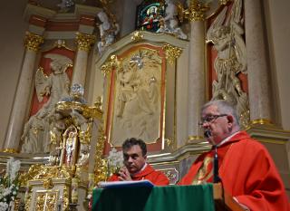 Słowa rozważania podczas tej Eucharystii skierował do zebranych w świątyni ks. kan. Grzegorz. Nawiązując do przeżywanego Tygodnia Świętego Krzysztofa zwrócił uwagę, że na naszych drogach zbyt często dochodzi do tragicznych w skutkach wypadków. Zaznaczył, że jako chrześcijanie zdajemy sobie sprawę z najważniejszego celu naszego życia. Zaakcentował, że nie możemy przewidzieć wszystkich sytuacji, w których może być zagrożone nasze życia, ale możemy być przezorni i odpowiedzialni troszcząc się o życie swoje i bliźnich. Kaznodzieja apelował: „ Zasiadając za kierownicami naszych aut nie pozostawiajmy wiary za drzwiami, w żadnej sytuacji nie zapominajmy o dobru drugiego człowieka, którego mijamy podczas kolejnej podróży. On również pragnie bezpiecznie przemierzyć kolejne odcinki swojej drogi”. Kontynuując celebrans podkreślił, że każdy z nas jest dzieckiem Bożym, a nie anonimową osobą mijaną na drodze. Podkreślił, że św. Krzysztof był tym, który troszczył się o to, by ludzie bezpiecznie przeprawili się na drugi brzeg rzeki. Zwrócił uwagę na odpowiedzialność jaka spoczywa na kierowcach. „Nie jesteśmy panami szos, ani piratami drogowymi. Sposób prowadzenia pojazdu jest odzwierciedleniem naszego stosunku do tego wielkiego daru jaki otrzymaliśmy od samego Stwórcy, a którym jest nasze życie” – dodał ks. kan. Grzegorz. Zachęcał, by rozpoczynać każdą podróż prosząc Boga, by powstrzymał nas przed jazdą z nadmierną prędkością i uwrażliwił nas na piękno otaczającego świata i innych ludzi , których mijamy na drogach. Prośbą o to, by św. Krzysztof nas zawsze prowadził zakończył kaznodzieja rozważanie.