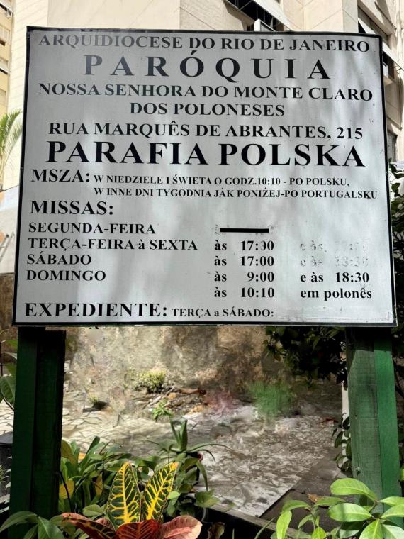 W każdą niedzielę i święta Msza św. w języku polskim sprawowana jest w kościele polskim w Rio de Janeiro o godz. 10.15