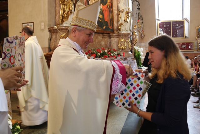 Biskup wręczył dyplomy i upominki laureatom konkursu plastycznego pt. „Św. Józef patron rodziny”. Uczniowie 9 szkół specjalnych z terenu diecezji kaliskiej wykonali obrazy przedstawiające św. Józefa.