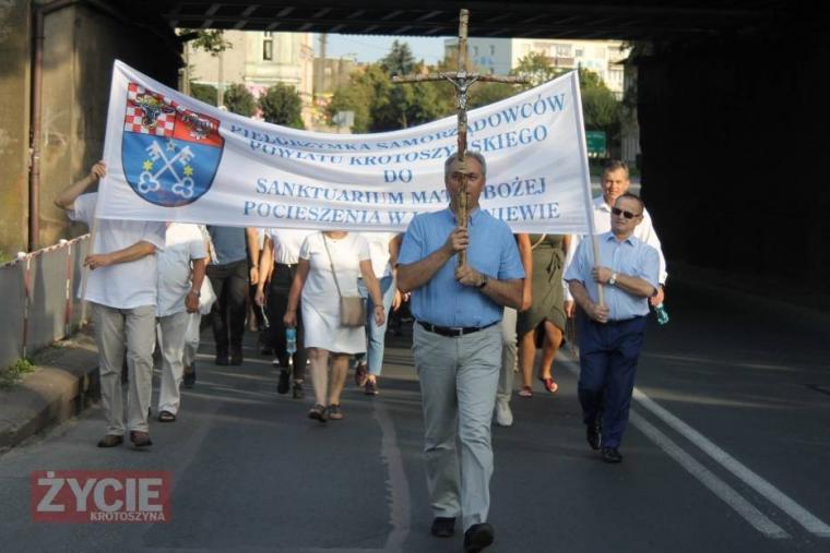 Autor/źródło: https://krotoszyn.naszemiasto.pl/wyruszyła XIV Pielgrzymka Samorządowców Powiatu Krotoszyńskiego. W pielgrzymce szli również policjanci, rodziny samorządowców oraz dziekan krotoszyński i proboszcz parafii p. w. św. Jana Chrzciciela w Krotoszynie, ks. prałat dr Aleksander Gendera. Przy bramie kościoła zebranych powitał i poświęcił kustosz Sanktuarium Matki Bożej Pocieszenia w Lutogniewie ks. kan. Łukasz Żurawski. Mszę świętą, o godzinie 19:00, odprawił ks. Michał Będzieszak. W koncelebrze stanęli: ks. kan. Łukasz Żurawski i ks. Mirosław Ziembiński. Sobotnie Uroczystości Odpustowe zakończyły się Apelem Jasnogórskim o godzinie 21:00.