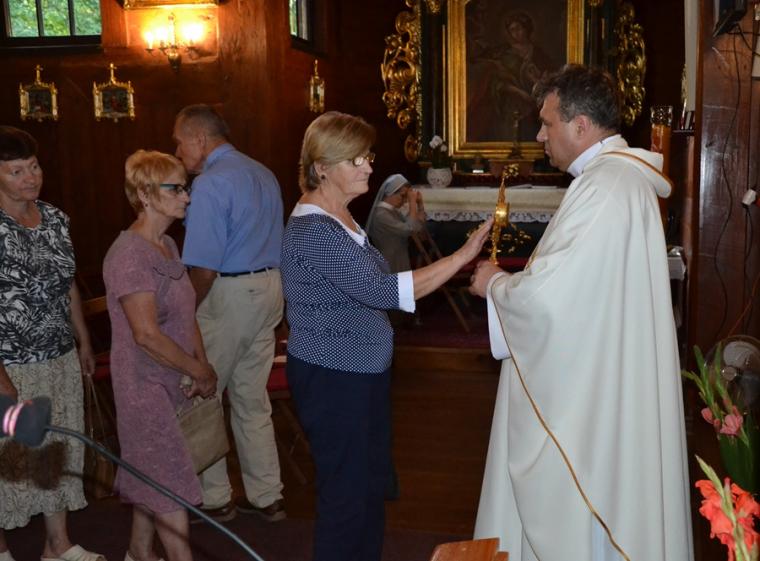 Dorośli parafianie i pielgrzymi przygotowują się do uroczystości odpustowych poprzez udział w mszach św. podczas których, głoszone są nauki. W tym roku głosi je ks. Sebastian Łagódka. W drugim dniu przygotowań duchowych do uroczystości odpustowych o godz. 18:00 odmówiony został różaniec. Dlaczego właśnie to modlitwa? Bo nasz niebieski patron był wielkim czcicielem Matki Bożej, a na naszym obrazie przedstawiony jest z różańcem zwisającym u pasa. Po różańcu odśpiewane zostały Godzinki o świętym Rochu Wyznawcy. O godz. 18:30 rozpoczęła się Eucharystia, której przewodniczył ks. Sebastian Łagódka, zaś współcelebransem był ks. kan. Krzysztof Ordziniak. Podczas tej mszy świętej wierni wysłuchali kolejnej konferencji. Przypomnijmy, w pierwszej ksiądz rekolekcjonista skoncentrował uwagę na chrzcie, który jest punktem wyjścia naszej wiary, zanurza nas w łasce Bożej. Zachęcał, byśmy rozbudzili w sobie pragnienia całkowitego zanurzenia naszego życia w Bogu. Ksiądz Sebastian zwrócił uwagę, że istnieje niebezpieczeństwo, że zamiast zanurzyć się w Bogu, przyjąć to co daje on nam każdego dnia, próbujemy stawia warunki. Podkreślił, że w dniu chrztu zostaliśmy naznaczeni znakiem krzyża, znak błogosławieństwa. To właśnie znak krzyża stał się myślą przewodnią czwartkowej konferencji. Kontynuując kaznodzieja nawiązał do znaku krzyża, którym naznaczony był święty Roch. Podkreślił, że krzyż był mocno obecny w jego życiu, także w postaci cierpienia. Kontynuując kapłan powiedział: „ Zostaliśmy naznaczeni krzyżem to znaczy, że nasza wiara nie może nigdy wyrzec się krzyża i nie może uciekać od krzyża”. Dzieląc się swoim spostrzeżeniem z kapłańskiej posługi zaakcentował, że ludzie czasami ulegają pokusie chrześcijaństwa bez krzyża. Polega ona na myśleniu, że jeśli będziemy chodzić do kościoła, modlić się, spowiadać regularnie to ominą nas w życiu wszystkie trudności. Gdy te trudności się pojawiają człowiek zaczyna robić Bogu wyrzuty, stawiać Bogu pytanie: dlaczego mi to robisz? Jest to efektem niewłaściwego pojmowania wiary. Nawiązując do słów Ewangelii podkreślił, że uczniowie Jezusa usłyszeli słowa o czekającym cierpieniu, ale nie usłyszeli o tym, że zmartwychwstanie. Kaznodzieja wskazał, że Jezus mówił o tym, że na drodze wiary jest krzyż. Zaakcentował, że nam potrzebny jest krzyż. Ksiądz Sebastian przywołał słowa papieża Franciszka: „Nie chciejcie Chrystusa bez krzyża. Chrystus bez krzyża nie jest zbawicielem jest tylko nauczycielem, jest tylko człowiekiem z dobrą prawdą”. Kontynuując ksiądz rekolekcjonista podkreślił, że Zbawicielem jest ten, który umiera na krzyżu i zmartwychwstaje. Zaznaczył, że krzyż bez Chrystusa jest czymś co nas przygniata. W dalszej części konferencji ks. Sebastian zaznaczył, że człowieka prędzej czy później doświadczy krzyża. Zwrócił uwagę, że gdy chcemy zrobić coś dobrego, wymaga to od nas wysiłku, trudu, czynienie zła przychodzi nam znacznie łatwiej. Podkreślił, że cierpienie, śmierć są efektem zawiści diabła.