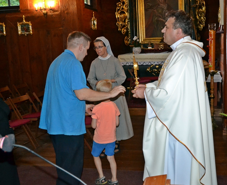 Kończąc konferencje kaznodzieja powiedział; „ Nie bójmy się krzyża, nie uciekajmy od krzyża. On prędzej czy później i tak nas dotyka, ale kiedy się zbliża patrzmy czy my jesteśmy w pobliżu Pana Jezusa, czy mamy Go ze sobą, żeby był z nami. On wie jak krzyż przeżyć. On jedyny wie jak z krzyża zejść, On jedyny potrafi człowieka, który jest na krzyżu uzdrowić i wskrzesić do życia”. Dziękujemy księdzu rekolekcjoniście za głęboką refleksje i wskazówki dotyczące przeżywania krzyża w naszym życiu. Wiele ważnych słów padło podczas tej konferencji, które zapewne uświadomiły nam ogrom czekającej nas pracy nad sobą. Jakże często trudno nam przyjąć krzyż trudnych doświadczeń, cierpienia, śmierci. Przyjmowania krzyża i woli Bożej uczy nas przykładem swego życia także nasz niebieski Patron- św. Roch. On całkowicie zanurzył się w Bogu, przyjął do swego życia Chrystusa wraz z krzyżem. Tak wiele mamy w tym zakresie jeszcze do zrobienia, ale jak powiedział nam ks. Sebastian w pierwszej konferencji, mamy całe życia na to, by uczyć się wiary. Może właśnie ten przedodpustowy czas dany nam jest po to byśmy uczynili w naszym życiu coś co pomoże nam lepiej przyjąć i realizować w codzienność prawdę o tym, że nie ma Chrystusa bez krzyża.