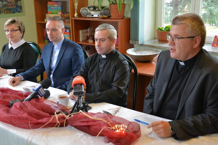 Przed południem w ośrodku opiekuńczo-leczniczym „Samarytanin” dyrektor Caritas Polska odpowiadał na pytania dziennikarzy. Podkreślił, że Caritas jest największą w Polsce organizacją charytatywną. Swoją działalność mogła wznowić po przemianach, jakie dokonały się w Polsce po 1989 roku. Każdego roku swoją pomocą obejmuje setki tysięcy osób znajdujących się w potrzebie. – Działania są wielokierunkowe. Obejmują m.in. osoby niepełnosprawne, bezdomne, osoby starsze i chore, a także wolontariat. Działania Caritas skierowane są również na zagranicę. Prowadzimy min. projekt „Rodzina rodzinie” skierowany do ofiar wojny w Syrii, programy stypendialne dla dzieci i młodzieży na Bliskim Wschodzie. Wspomagamy także Caritas na Białorusi. Na arenie międzynarodowej współpracujemy z Caritas Internationalis i Caritas Europa – mówił ks. Marcin.