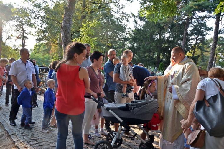 W słowie skierowanym do wiernych ks. wikariusz wskazał, że usłyszane w Ewangelii błogosławieństwa są nowymi przykazaniami przyniesionymi przez Chrystusa. Ludziom kojarzą się przykazania z ograniczeniami. Biblia widzi je jako środki i drogowskazy prowadzące do szczęścia. Kontynuując celebrans pytał ilu z nas żyje naprawdę tymi błogosławieństwami. Zaakcentował, że błogosławieństwa są zadaniem, które maja być pomocne w zmierzaniu do życia wiecznego. Po Mszy Świętej ks. wikariusz odmówił modlitwę błogosławieństwa dzieci. Następnie ks. proboszcz Krzysztof Ordziniak i ks. wikariusz udzielali dzieciom indywidualnego błogosławieństwa. Na pamiątkę tego modlitewnego spotkania dzieci otrzymały obrazki ze św. Rochem. Nie zabrakło oczywiście słodyczy. Warto dodać, że licznie rzesza rodziców przybyła ze swoimi dziećmi na Mikstackie Wzgórze, by przez wstawiennictwo świętego Rocha prosić Boga o wszelkie potrzebne dla nich łaski. Słowa zachęty do rodziców, by często sami błogosławili swoje dzieci usłyszeliśmy także od ks. bpa Wiesława Szlachetki w homilii wygłoszonej podczas sumy odpustowej Po Mszy św. procesja z Najświętszym Sakramentem i relikwiami św. Rocha wyruszyła do fary. Zakończyły się uroczystości odpustowe, ale przecież Pan Jezus i Święty Roch są nadal z nami. Drzwi Diecezjalnego Sanktuarium Świętego Rocha są codziennie otwarte, bo Ten który pochylał się nad każdym potrzebującym człowiekiem zaprasza i czeka, byśmy dzielili z nim nasze radości i troski. Wszak jest Patronem codziennych trudnych spraw.