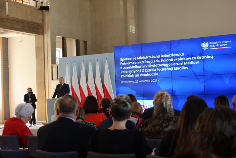 Pierwszego dnia Forum uczestnicy spotkali się w Kancelarii Prezesa Rady Ministrów z pełnomocnikiem rządu ds. Polonii i Polaków za Granicą Janem Dziedziczakiem, który podkreślił znaczenie mediów polonijnych: „To nie tylko gazety, stacje radiowe i telewizyjne oraz portale internetowe, ale środowiska, które widzą więcej, czując odpowiedzialność za polskie środowiska” – mówił minister.