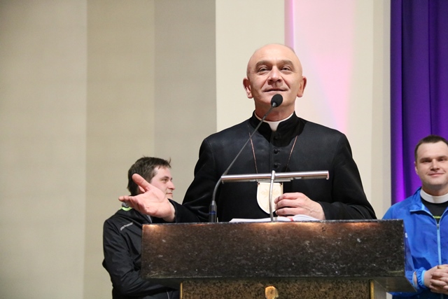 Półmaraton zakończył się w kościele św. Pawła Apostoła w Ostrowie Wielkopolskim wspólną modlitwą i rozdaniem pamiątkowych medali. Wcześniej, o godz. 21.00, w oczekiwaniu na powrót biegaczy w ostrowskiej świątyni odprawione zostało nabożeństwo drogi krzyżowej. Uczestników Biegowej Drogi Krzyżowej witał ks. kan. Jacek Kita. – Bądźcie dumni z siebie i z treści oraz wartości, które dziś ukazaliście poprzez świadectwo wiary w tej drodze krzyżowej. Bądźcie dumni z siebie, że jesteście Polakami i katolikami. Bądźcie dumni z tych treści i bądźcie tego świadkami w swoich miejscowościach. Dzisiaj świat nie potrzebuje nauczycieli, ale potrzebuje świadków. Bóg, honor i ojczyzna, a także krzyż na Giewoncie to są zawsze te znaki, które gdzieś głęboko leżą w naszych sercach - powiedział proboszcz parafii św. Pawła Apostoła w Ostrowie Wielkopolskim. Dziękował biegaczom za świadectwo wiary. - Dziękuję wam za to piękne świadectwo waszej wiary i przywiązania do tego, co stanowi filar naszej tożsamości narodowej – powiedział ks. Kita.