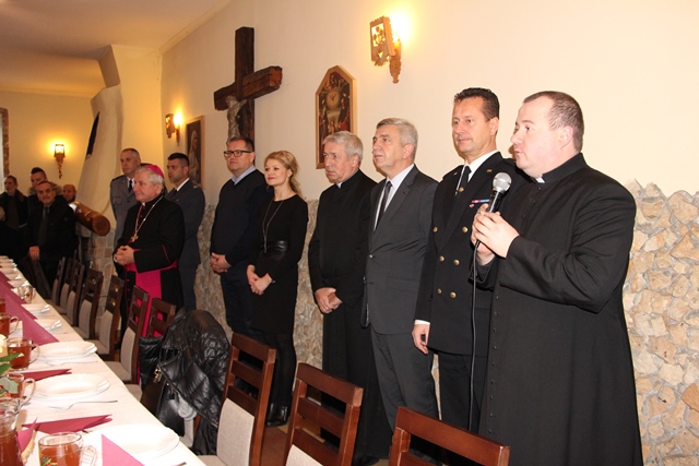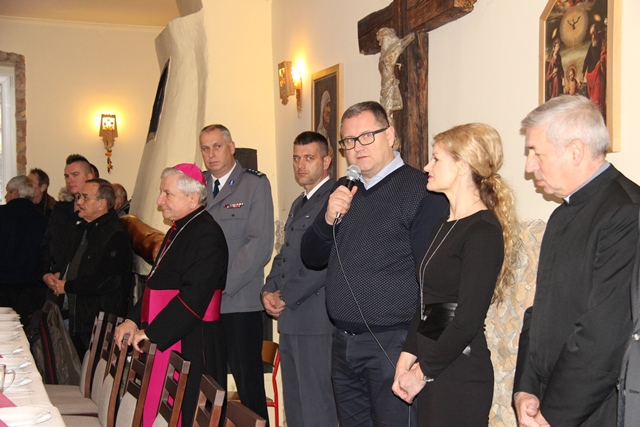 Życzenia zgromadzonym na wieczerzy złożył dyrektor Caritas Diecezji Kaliskiej. – Życzę, aby Pan Bóg wam błogosławił, chronił przed niebezpieczeństwem i by ten czas świąteczny był dobrze przez was wykorzystany – mówił ks. Jacek Andrzejczak.