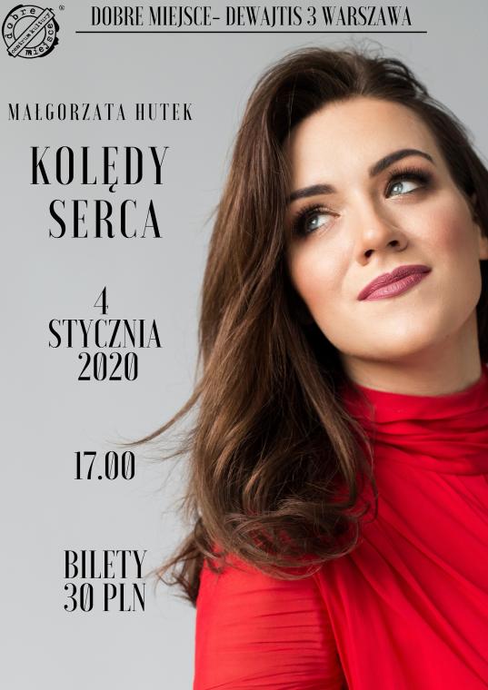 Okres Bożego Narodzenia to szczególny czas świętowania, wspólnego śpiewania kolęd i pastorałek, to czas, na który czekamy cały rok. Spędźmy go razem w Dobrym Miejscu. Zapraszamy na wyjątkowy koncert „Kolędy serca”, w wykonaniu duetu znakomitych muzyków Małgorzaty Hutek (wokal) i Karola Makowskiego (instr. klawiszowe).
