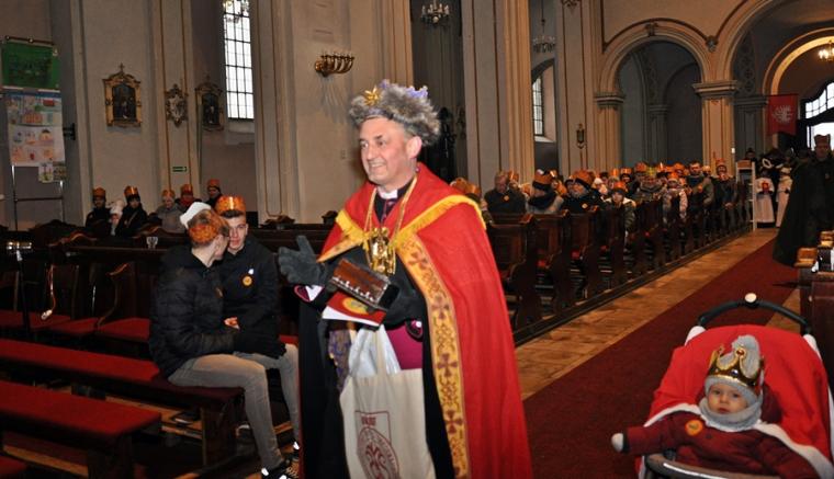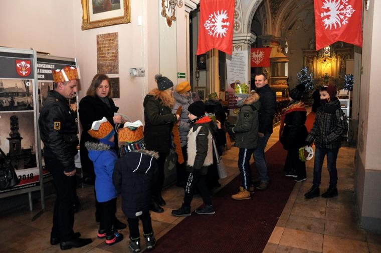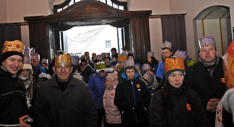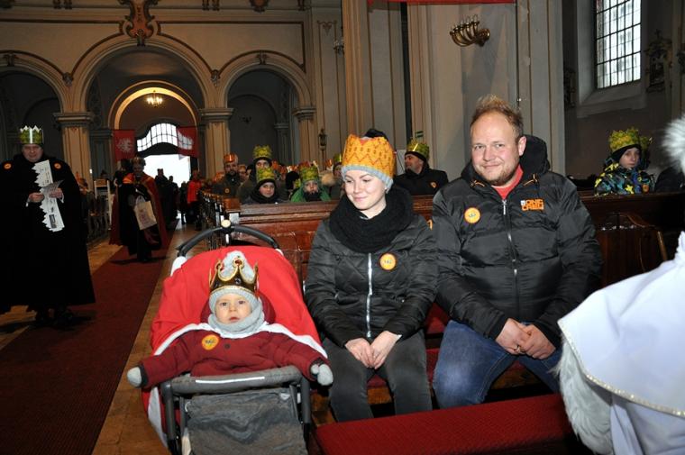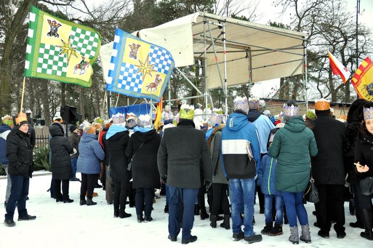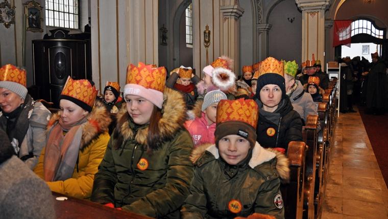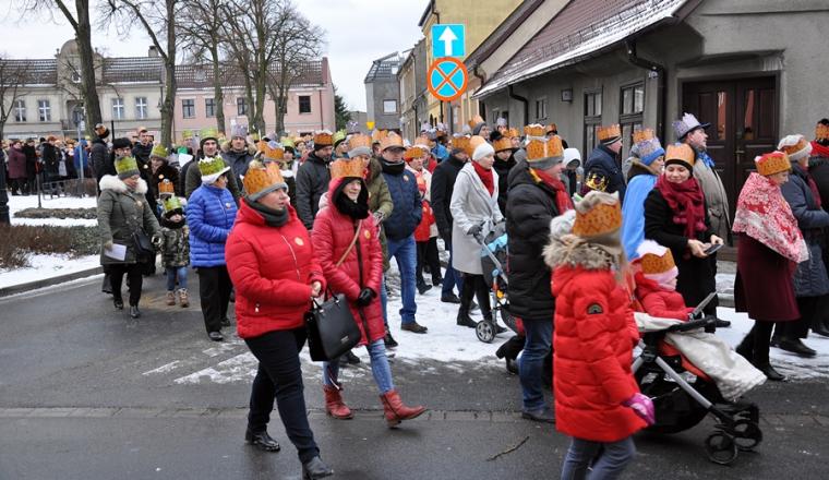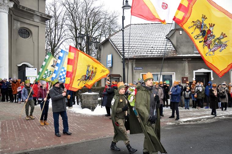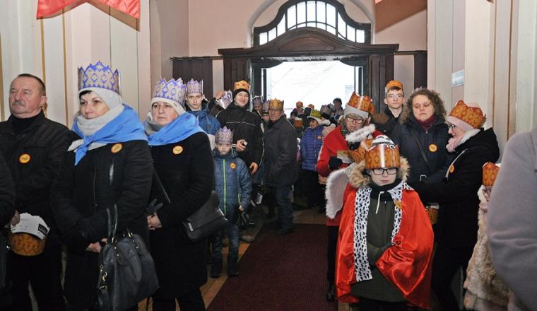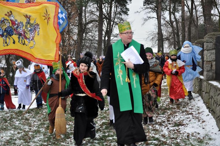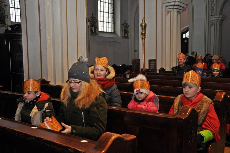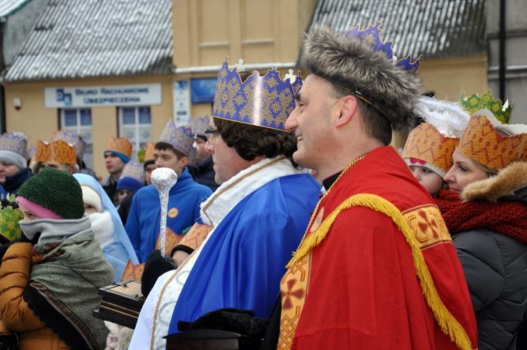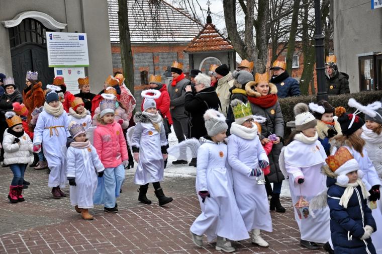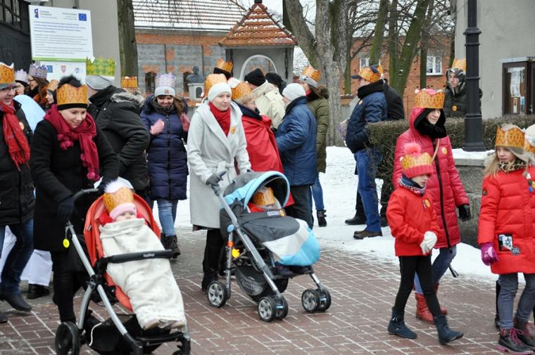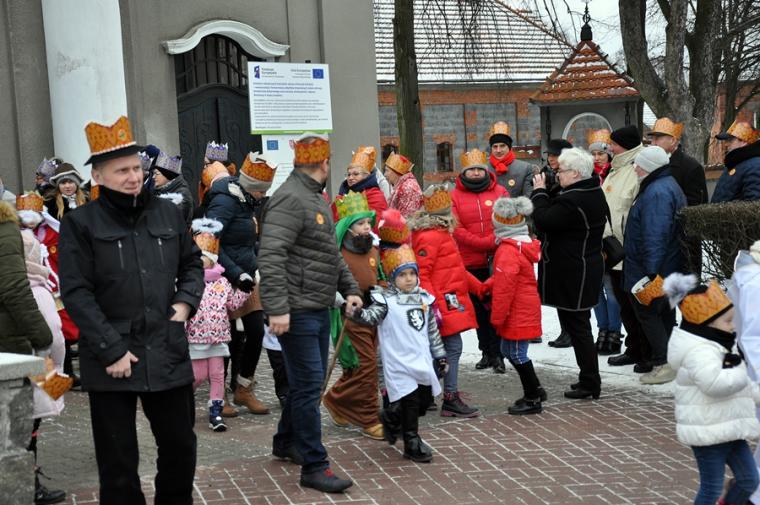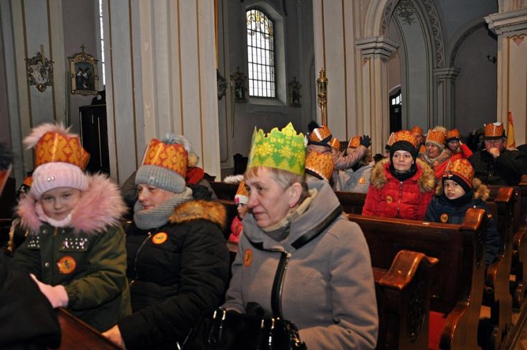 Około godz. 14:00 w kościele pw. Świętej Trójcy zaczęli zbierać się uczestnicy Królewskiego Orszaku. Tu odbyła się jego pierwsza część, którą poprowadził ks. Szymon Grzeszkiewicz, proboszcz parafii pw. Zwiastowania Pańskiego. Rozpoczynając ks. Szymon podkreślił, że spotykamy się po raz pierwszy, wspólnie, dekanalnie, by obchodzić obchodach Święta Objawienia Pańskiego, by wziąć udział w Orszaku Królewskim. Zaakcentował, że uczestnicy Orszaku podobnie jak Mędrcy ze Wschodu udają się, by oddać pokłon Jezusowi, ale także dać świadectwo swojej wiary. Następnie ks. Szymon skierował słowa powitania do wszystkich tych, którzy przybyli wraz ze swoimi parafiami. W postacie królów wcielili się księża proboszczowie. Kapłan podkreślił, że Orszak Trzech Króli, nie ma długiej tradycji, ale coraz więcej miejscowości włącza się w tę radosną formę świętowania i wspólnego kolędowania.