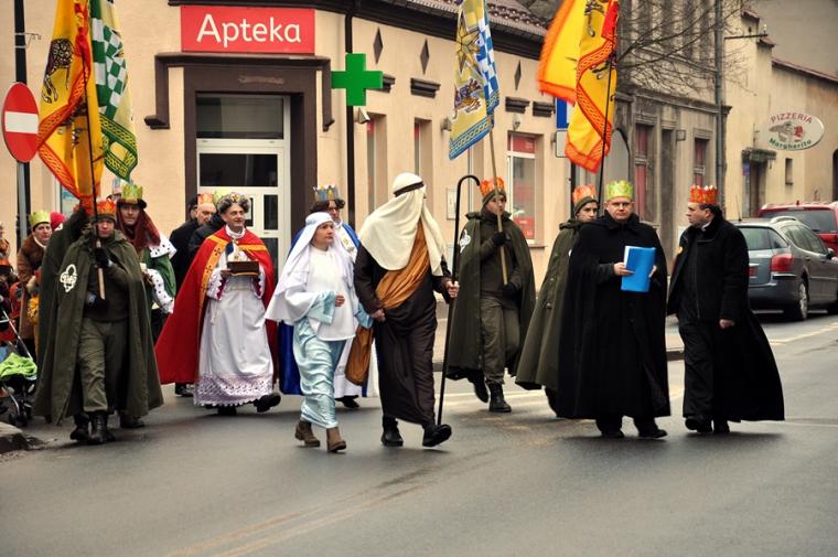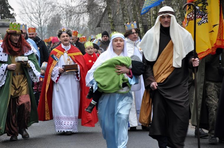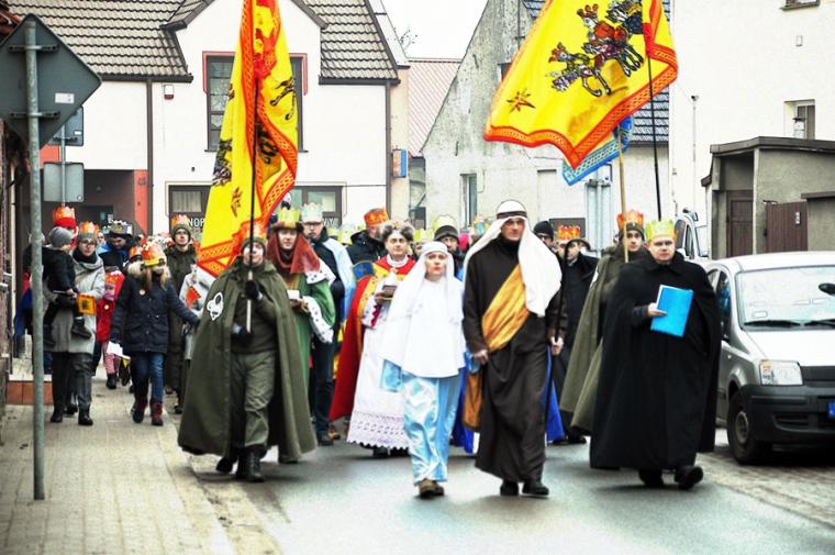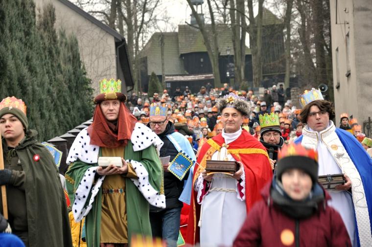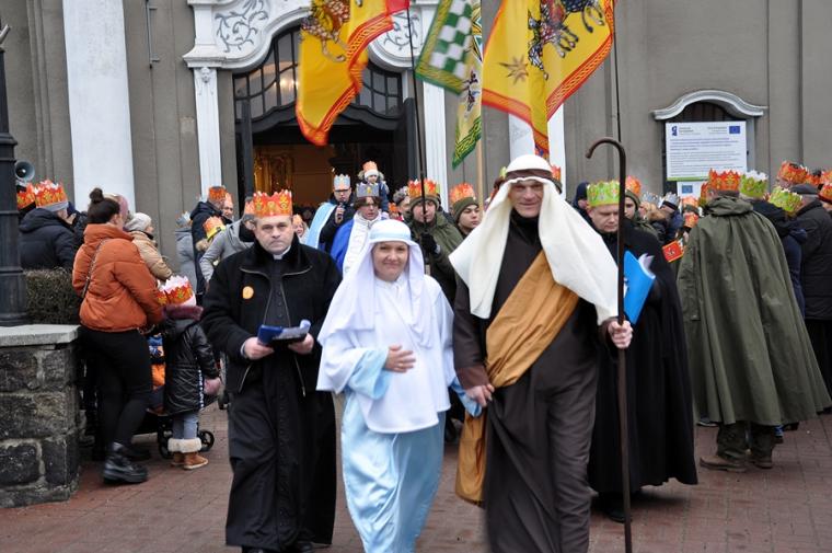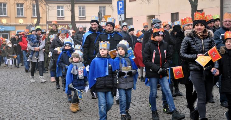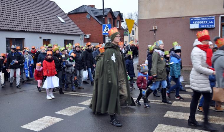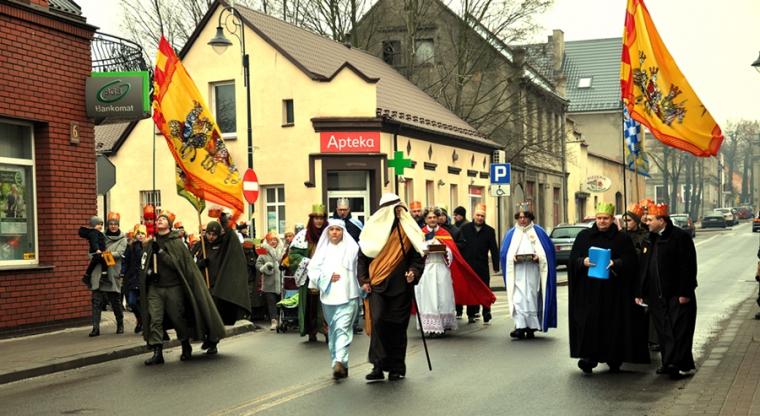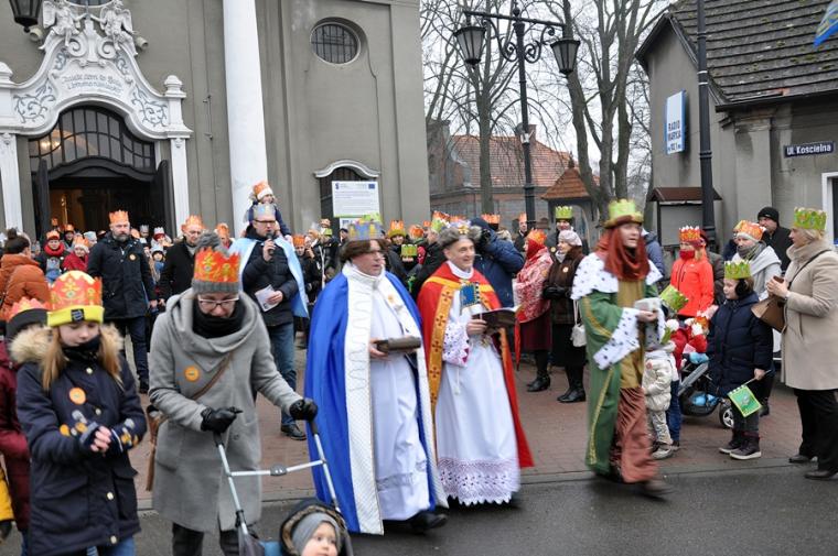 Radośnie i wyjątkowo kolorowo było na ulicach Mikstatu, zwłaszcza w okolicach kościoła pw. Świętej Trójcy około godziny 14:00, 6. stycznia, w uroczystość Objawienia Pańskiego popularnie nazywanego Świętem Trzech Króli. To właśnie świadectwo wiary Trzech Króli zgromadziło tak wiele osób w zielonych, niebieskich bądź czerwonych koronach. Postanowili tak jak kiedyś Mędrcy ze Wschodu wyruszyć w drogę, by dotrzeć do stajenki i w małym Dzieciątku złożonym w ubogim żłobie dostrzec wyczekiwanego Syna Bożego. Orszak Trzech Króli odbył się w Mikstacie po raz drugi. Do udziału w nim zaproszeni zostali wierni z sąsiednich parafii, które należą do dekanatu mikstackiego. Koordynatorem działań związanych organizacją Orszaku był ks. kan. Krzysztof Ordziniak, dziekan mikstackiego dekanatu. Dla uczestników zostały przygotowane korony w niebieskim, czerwonym, zielonym kolorze, śpiewnik, a dzieci także kolorowe chorągiewki. Na ten dekanalny Orszak przybyli ze swoimi duszpasterzami wierni z parafii w Chynowej, Kaliszkowic Kaliskich, Kotłowa, Przedborowa i Mikstatu. Każdy z duszpasterzy miał w nim do spełnienia określoną rolę. W tym roku konferansjerem był ks. W rolę konferansjera wcielił się w tym roku ks. Aleksander Nawrocki, proboszcz parafii pw. Świętego Idziego w Przedborowie. Osoby z tej parafii odgrywały rolę Maryi i Józefa, a w pewnym momencie pojawiło się nawet „Boże Dzieciątko”. Duszpasterze pozostałych parafii wcielili się w role królów. W postać króla europejskiego Kacpra wcielił się ks. kan. Adam Kosmała, proboszcz parafii rzymskokatolickiej pw. Narodzenia NMP w Kotłowie. Jego orszak stanowili wierni z parafii pw. Świętej Trójcy w Mikstacie, którzy otrzymali korony w kolorze czerwony, a wielu zadbało o to, by w ich ubiorze znalazł się jakiś element tej barwy. Ks. kan. Przemysław Talaga proboszcz parafii pw. Świętego Wawrzyńca w Chynowej wcielił się w postać króla afrykańskiego Baltazara. Orszak tego króla składał się z wiernych z parafii w Chynowej i z Kotłowa. Wyróżniał się niebieskimi koronami i dodatkami do ubioru w tym kolorze. Orszak króla azjatyckiego składał się z uczestników z parafii w Przedborowie i parafii w Kaliszkowicach Kaliskich. Na jego czele stał król Melchior -ks. Szymon Grzeszkiewicz- proboszcz parafii w Kaliszkowicach Kaliskich. Temu orszakowi został przypisany kolor zielony. Tegoroczny Orszak Trzech Króli AD 2020 przebiegał pod hasłem „Cuda, cuda, ogłaszają…”. Są nim słowa z kolędy „Dzisiaj w Betlejem”, które nawiązują do ważnych wydarzeń z historii naszego kraju, ale także do „cudu” jakim jest odnalezienie i dostrzeżenie w Dzieciątku narodzonemu w ubogich warunkach i złożonemu w żłobie Syna Bożego. Mają nas one mobilizować do nieustannego poszukiwania Boga. Orszak wyruszył o godz. 14:00 z kościoła farnego pw. Świętej Trójcy w Mikstacie, a zakończy się na parkingu przy Urzędzie Miasta i Gminy. W kościele uczestnicy orszaku powitali brzemienną Maryję i Józefa. Uroczyste fanfary ogłosiły nadejście Trzech Króli. Następnie ze śpiewem kolędy „ Mędrcy świata monarchowie” za proporcem orszakowym i chorągwiami poszczególnych królestw uczestnicy udali się pod figurę Najświętszego Serca Jezusowego, która stoi w centralnym punkcie rynku. Tu obejrzeli przygotowaną przez Koło teatralne działające przy szkole podstawowej w Mikstacie scenkę „Dwór Heroda”. Była ona interesującą interpretacją kolędy „ Bóg się rodzi”. Pojawiły się tu Święta Rodzina, aniołowie, ale i diabły, które zastanawiały się cóż to dziwnego wydarzyło się w Betlejem. Z Rynku Królewski Orszak uliczki miasta udał się przed bramę prowadzącą do Diecezjalnego Sanktuarium Świętego Rocha. Tu zaprezentowana została kolejna scenka pokłon Trzech Króli Jezusowi, Maryi i Józefowi oraz złożenie Bożej Dziecinie darów mających symboliczną wymowę: złota, kadzidła i mirry. Następnie Królewski Orszak ze śpiewem i okrzykami wyrażającymi radość z narodzenia Zbawiciela udał się na parking przy Urzędzie Miasta i Gminy. Na parkingu uczestnicy Orszaku obejrzeli piękne i mające głębokie przesłanie jasełka przygotowane przez uczniów szkoły podstawowej z Chynowej. Składały się na nie następujące scenki: poszukiwanie przez Józefa w Betlejem miejsca dla Maryi i mającego się narodzić Dziecięcia, oznajmienie pastuszkom przez anioła radosnej nowiny o narodzinach oczekiwanej Bożej Dzieciny. Następnie pastuszkowie udali się, by oddać hołd Jezusowi. Przynieśli także dary, proste, zwyczajne, ale ofiarowane z potrzeby serca będące wyrazem ich miłości, ale i troski o Bożą Dziecinę. Życzeniami osiągnięcia świętości i zawierzenia Bogu swego życia zakończyły swój występ dzieci z Chynowej. Dzieci otrzymały gromkie oklaski. Słowa podziękowania skierował do zaangażowanych w organizację i przebieg Orszaku koordynujący działania ks. kan. Krzysztof Ordziniak. Potem nadszedł czas na dalsze wspólne kolędowania, ciepłą zupę, herbatę i słodkości. Nie mogło ich zabraknąć, wszak Orszak Trzech Króli to czas radosnego świętowania. Świętowanie to ma oczywiście przede wszystkim wymiar religijny, jest okazją do refleksji nad tym czy „gwiazda” za którą podążamy doprowadzi nas tak jak Mędrców ze Wschodu skutecznie do Jezusa. Potrzebujemy takiego czasu refleksji, bycia razem. Potrzebują takiego świadectwa wiary ci, którzy być może przypatrując się podążającemu Orszakowi usłyszeli radosną nowinę o witanym w żłobie Dzieciąteczku, w którym my dostrzegliśmy już Boga. Niewątpliwie jest to także wielkie święto rodzin, bo obserwując Królewski Orszak można było zobaczyć całe rodziny. Ale odbywający się w Mikstacie Orszak spełnia jeszcze jedną ważną rolę. Stwarza możliwość poznawania się i integracji parafian mikstackie