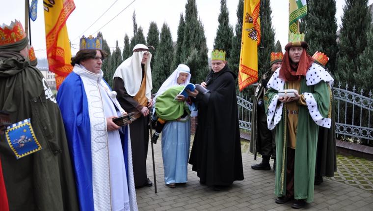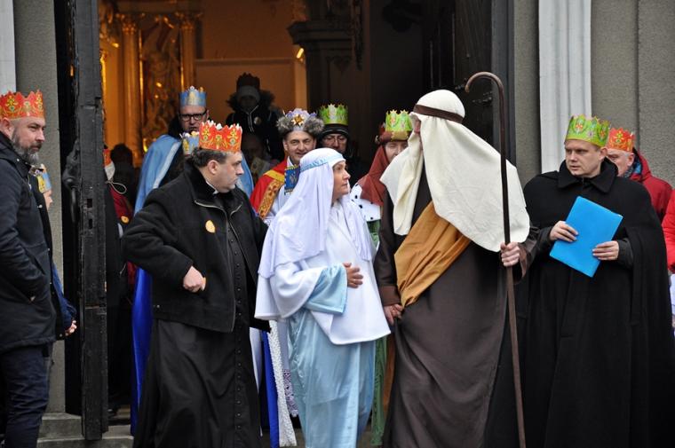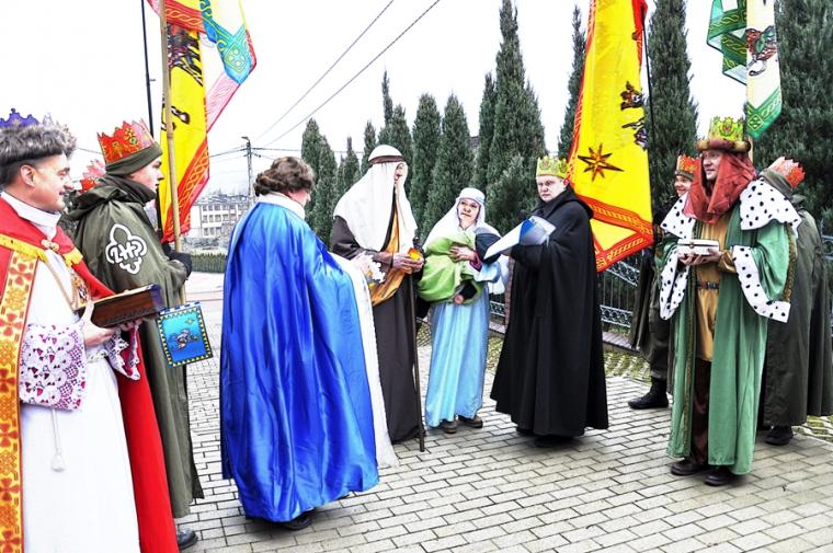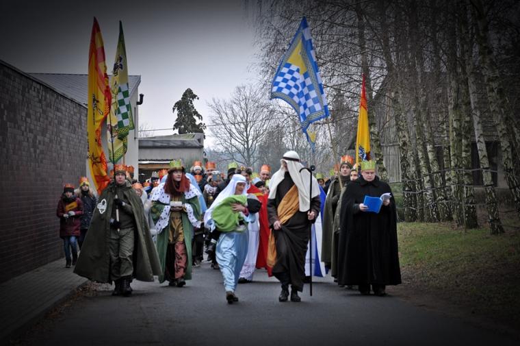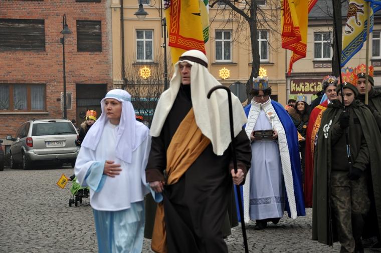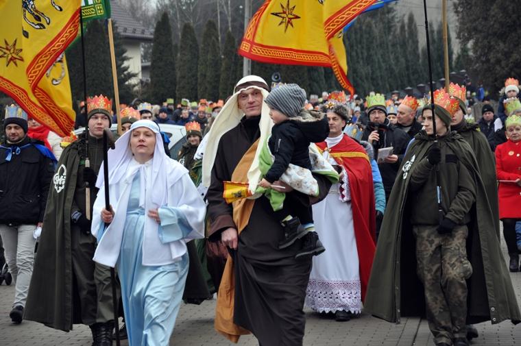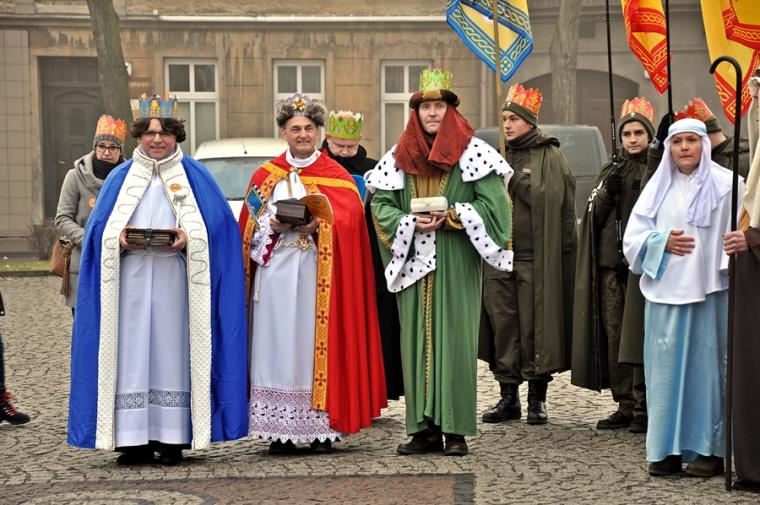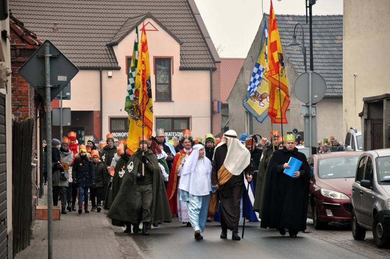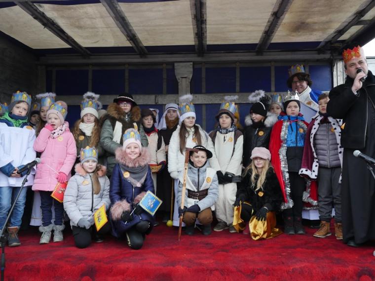 Radośnie i wyjątkowo kolorowo było na ulicach Mikstatu, zwłaszcza w okolicach kościoła pw. Świętej Trójcy około godziny 14:00, 6. stycznia, w uroczystość Objawienia Pańskiego popularnie nazywanego Świętem Trzech Króli. To właśnie świadectwo wiary Trzech Króli zgromadziło tak wiele osób w zielonych, niebieskich bądź czerwonych koronach. Postanowili tak jak kiedyś Mędrcy ze Wschodu wyruszyć w drogę, by dotrzeć do stajenki i w małym Dzieciątku złożonym w ubogim żłobie dostrzec wyczekiwanego Syna Bożego. Orszak Trzech Króli odbył się w Mikstacie po raz drugi. Do udziału w nim zaproszeni zostali wierni z sąsiednich parafii, które należą do dekanatu mikstackiego. Koordynatorem działań związanych organizacją Orszaku był ks. kan. Krzysztof Ordziniak, dziekan mikstackiego dekanatu. Dla uczestników zostały przygotowane korony w niebieskim, czerwonym, zielonym kolorze, śpiewnik, a dzieci także kolorowe chorągiewki. Na ten dekanalny Orszak przybyli ze swoimi duszpasterzami wierni z parafii w Chynowej, Kaliszkowic Kaliskich, Kotłowa, Przedborowa i Mikstatu. Każdy z duszpasterzy miał w nim do spełnienia określoną rolę. W tym roku konferansjerem był ks. W rolę konferansjera wcielił się w tym roku ks. Aleksander Nawrocki, proboszcz parafii pw. Świętego Idziego w Przedborowie. Osoby z tej parafii odgrywały rolę Maryi i Józefa, a w pewnym momencie pojawiło się nawet „Boże Dzieciątko”. Duszpasterze pozostałych parafii wcielili się w role królów. W postać króla europejskiego Kacpra wcielił się ks. kan. Adam Kosmała, proboszcz parafii rzymskokatolickiej pw. Narodzenia NMP w Kotłowie. Jego orszak stanowili wierni z parafii pw. Świętej Trójcy w Mikstacie, którzy otrzymali korony w kolorze czerwony, a wielu zadbało o to, by w ich ubiorze znalazł się jakiś element tej barwy. Ks. kan. Przemysław Talaga proboszcz parafii pw. Świętego Wawrzyńca w Chynowej wcielił się w postać króla afrykańskiego Baltazara. Orszak tego króla składał się z wiernych z parafii w Chynowej i z Kotłowa. Wyróżniał się niebieskimi koronami i dodatkami do ubioru w tym kolorze. Orszak króla azjatyckiego składał się z uczestników z parafii w Przedborowie i parafii w Kaliszkowicach Kaliskich. Na jego czele stał król Melchior -ks. Szymon Grzeszkiewicz- proboszcz parafii w Kaliszkowicach Kaliskich. Temu orszakowi został przypisany kolor zielony. Tegoroczny Orszak Trzech Króli AD 2020 przebiegał pod hasłem „Cuda, cuda, ogłaszają…”. Są nim słowa z kolędy „Dzisiaj w Betlejem”, które nawiązują do ważnych wydarzeń z historii naszego kraju, ale także do „cudu” jakim jest odnalezienie i dostrzeżenie w Dzieciątku narodzonemu w ubogich warunkach i złożonemu w żłobie Syna Bożego. Mają nas one mobilizować do nieustannego poszukiwania Boga. Orszak wyruszył o godz. 14:00 z kościoła farnego pw. Świętej Trójcy w Mikstacie, a zakończy się na parkingu przy Urzędzie Miasta i Gminy. W kościele uczestnicy orszaku powitali brzemienną Maryję i Józefa. Uroczyste fanfary ogłosiły nadejście Trzech Króli. Następnie ze śpiewem kolędy „ Mędrcy świata monarchowie” za proporcem orszakowym i chorągwiami poszczególnych królestw uczestnicy udali się pod figurę Najświętszego Serca Jezusowego, która stoi w centralnym punkcie rynku. Tu obejrzeli przygotowaną przez Koło teatralne działające przy szkole podstawowej w Mikstacie scenkę „Dwór Heroda”. Była ona interesującą interpretacją kolędy „ Bóg się rodzi”. Pojawiły się tu Święta Rodzina, aniołowie, ale i diabły, które zastanawiały się cóż to dziwnego wydarzyło się w Betlejem. Z Rynku Królewski Orszak uliczki miasta udał się przed bramę prowadzącą do Diecezjalnego Sanktuarium Świętego Rocha. Tu zaprezentowana została kolejna scenka pokłon Trzech Króli Jezusowi, Maryi i Józefowi oraz złożenie Bożej Dziecinie darów mających symboliczną wymowę: złota, kadzidła i mirry. Następnie Królewski Orszak ze śpiewem i okrzykami wyrażającymi radość z narodzenia Zbawiciela udał się na parking przy Urzędzie Miasta i Gminy. Na parkingu uczestnicy Orszaku obejrzeli piękne i mające głębokie przesłanie jasełka przygotowane przez uczniów szkoły podstawowej z Chynowej. Składały się na nie następujące scenki: poszukiwanie przez Józefa w Betlejem miejsca dla Maryi i mającego się narodzić Dziecięcia, oznajmienie pastuszkom przez anioła radosnej nowiny o narodzinach oczekiwanej Bożej Dzieciny. Następnie pastuszkowie udali się, by oddać hołd Jezusowi. Przynieśli także dary, proste, zwyczajne, ale ofiarowane z potrzeby serca będące wyrazem ich miłości, ale i troski o Bożą Dziecinę. Życzeniami osiągnięcia świętości i zawierzenia Bogu swego życia zakończyły swój występ dzieci z Chynowej. Dzieci otrzymały gromkie oklaski. Słowa podziękowania skierował do zaangażowanych w organizację i przebieg Orszaku koordynujący działania ks. kan. Krzysztof Ordziniak. Potem nadszedł czas na dalsze wspólne kolędowania, ciepłą zupę, herbatę i słodkości. Nie mogło ich zabraknąć, wszak Orszak Trzech Króli to czas radosnego świętowania. Świętowanie to ma oczywiście przede wszystkim wymiar religijny, jest okazją do refleksji nad tym czy „gwiazda” za którą podążamy doprowadzi nas tak jak Mędrców ze Wschodu skutecznie do Jezusa. Potrzebujemy takiego czasu refleksji, bycia razem. Potrzebują takiego świadectwa wiary ci, którzy być może przypatrując się podążającemu Orszakowi usłyszeli radosną nowinę o witanym w żłobie Dzieciąteczku, w którym my dostrzegliśmy już Boga. Niewątpliwie jest to także wielkie święto rodzin, bo obserwując Królewski Orszak można było zobaczyć całe rodziny. Ale odbywający się w Mikstacie Orszak spełnia jeszcze jedną ważną rolę. Stwarza możliwość poznawania się i integracji parafian mikstackie
