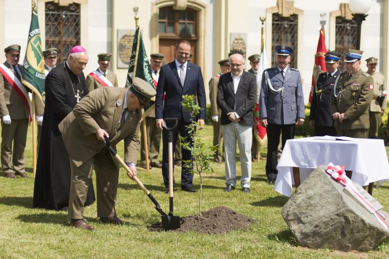 Kolejnym ważnym momentem spotkania było wspólne posadzenie dębu na 100 rocznicę odzyskania przez Polskę niepodległości. Dąb oraz tablica pamiątkowa znajdują się na placu przed Domem Opata. Jest to symbol, który pozostanie z nami na lata.