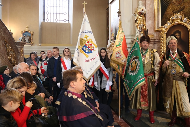 Mszy św. przewodniczył generał zakonu paulinów z Jasnej Góry o. Arnold Chrapkowski. Kustosz kaliskiej bazyliki ks. prał. Jacek Plota witając głównego celebransa podkreślał, że istnieje wiele wątków mówiących o ścisłej więzi Jasnej Góry z Kaliszem. Spośród nich wymienił o. Augustyna Kordeckiego urodzonego w Szczytnikach, najstarszą pieszą pielgrzymkę „Od Józefa do Maryi i od Maryi do Józefa”, czy współcześnie powołanie o. Łukasza Buzuna, ówczesnego przeora Jasnej Góry na biskupa pomocniczego diecezji kaliskiej. Kustosz przypomniał, że dziś mija szósta rocznica inauguracji pontyfikatu Papieża Franciszka, który jako wierny czciciel św. Józefa ofiarował złoty pierścień dla św. Józefa Kaliskiego i podniósł kaliskie sanktuarium do godności Narodowego Sanktuarium Św. Józefa.