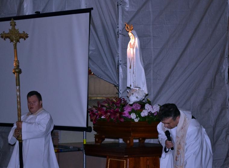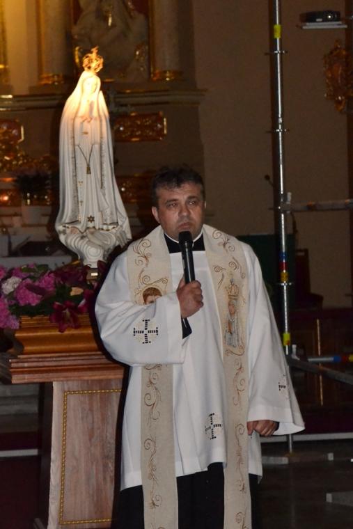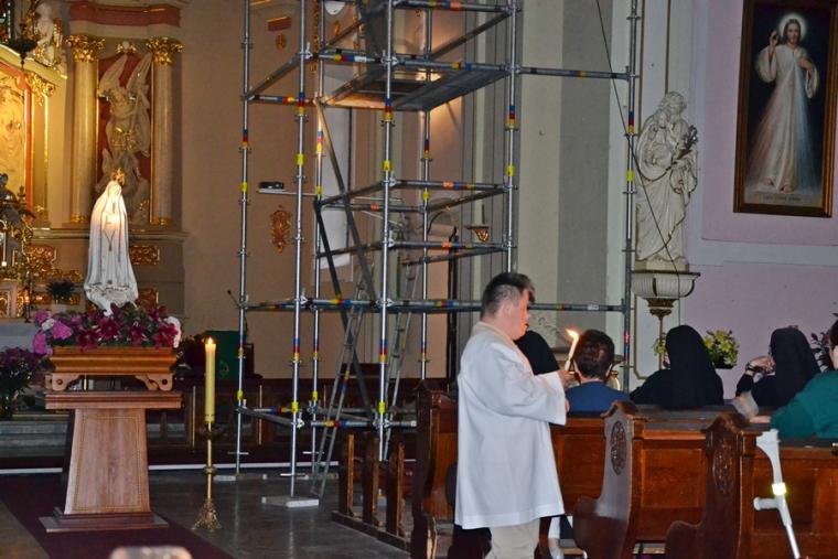 13. lipca o godz. 20:00 mikstaccy parafianie zgromadzili się na trzecim już w tym roku nabożeństwie fatimskim. Gdy przed rokiem relacjonowaliśmy to nabożeństwo ołtarz główny przesłonięty był foliową zasłoną. Trwały prace renowacyjne przy płaskorzeźbie Trójcy Świętej. Dziś możemy już podziwiać jej piękno. Lipcowe nabożeństwo fatimskie AD 2019 ponownie odprawione zostało w scenerii rusztowań i foliowych zasłon, kontynuowane są prace renowacyjne. Jednak i w tej „renowacyjnej scenerii” pięknie prezentowała się figura Matki Bożej Fatimskiej ustawiona w nawie środkowej, przyozdobiona kwiatami i otoczona miłującymi ją sercami parafian. Lipcowemu nabożeństwu fatimskiemu przewodniczył ks. proboszcz Krzysztof Ordziniak. Przed rozpoczęciem modlitwy różańcowej wprowadził nas w atmosferę wydarzenia sprzed ponad wieku. . Zapoznał nas z orędziem Maryi przekazanym dzieciom, podkreślając jednocześnie, że zadziwiać mogą te same okoliczności objawienia, wygląd szat Matki Bożej. Zaakcentował, że w czasach współczesnych do człowieka dociera wiele różnorodnych bodźców. Ks. kanonik zwrócił uwagę, że objawienia Maryi wskazują na potęgę tkwiąc nie w wielości, ale w systematyczności. Kapłan zachęcał zebranych do refleksji nad tym jaką modlitwę możemy systematycznie praktykować. Zachęcał do łącznia systematycznej modlitwy z udziałem w Eucharystii podczas której, możemy przyjmować Ciało Chrystusa. Zaakcentował, że świętość można osiągnąć realizując na co dzień wolę Bożą względem nas.