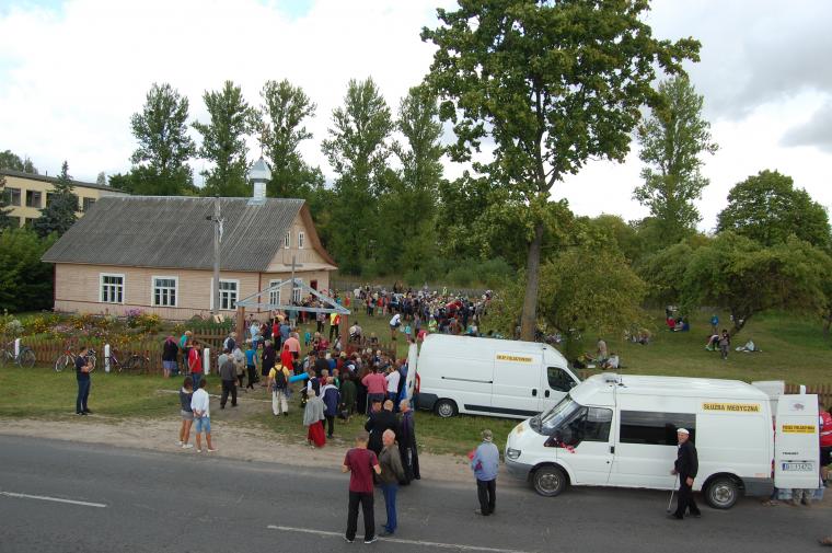 „Dotarliśmy do Jezior – wsi w obwodzie grodzieńskim, która liczy niewielu mieszkańców. W większości są to ludzie starsi. Dziewięć osób (razem ze mną) zostało przygarniętych przez małżeństwo w sędziwym wieku. Pani Jagna z mężem Michałem to ponad 80-letni mieszkańcy Jezior, którzy utrzymują się z pracy własnych rąk. To co od razu rzuciło się w oczy po przyjściu do gospodarzy, to po prostu bardzo skromne warunki, w jakich żyją starsi ludzie. Widząc, jak mieszkają, w ogóle nie oczekiwaliśmy zbyt wiele. Gospodarze robili co mogli, żeby nas jak najlepiej ugościć. Wyrazem tego były prezenty w postaci czekolady. Ku zaskoczeniu wszystkich zaproszono nas na kolację. Stół był zastawiony jak na wigilię. Widząc to wszystko, trudno nam było zjeść przygotowany posiłek, bo wiedzieliśmy, że większość produktów była zbierana przez cały rok i czekała do sierpnia, żeby tylko pielgrzymi mogli z nich skorzystać. Ta otwartość domu to jedno, ale to, co szczególnie zapamiętałem, to radość ze spotkania z nami i płomień miłości w oczach gospodarzy. Pod ich dachem, mimo że w skromnych warunkach, czuliśmy się po prostu jak u najukochańszych dziadków”.