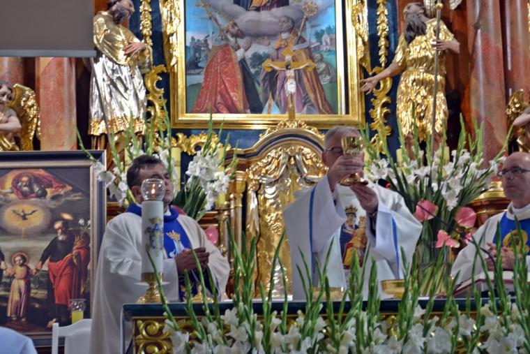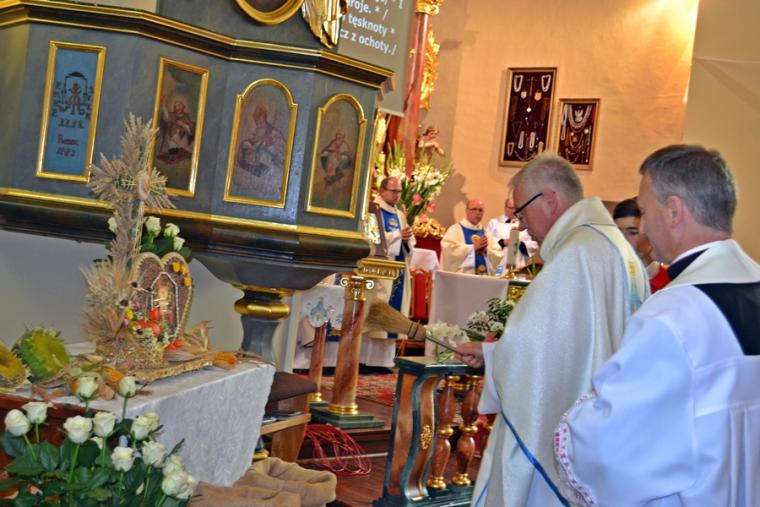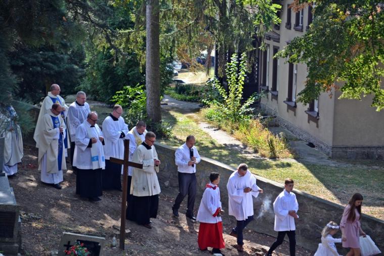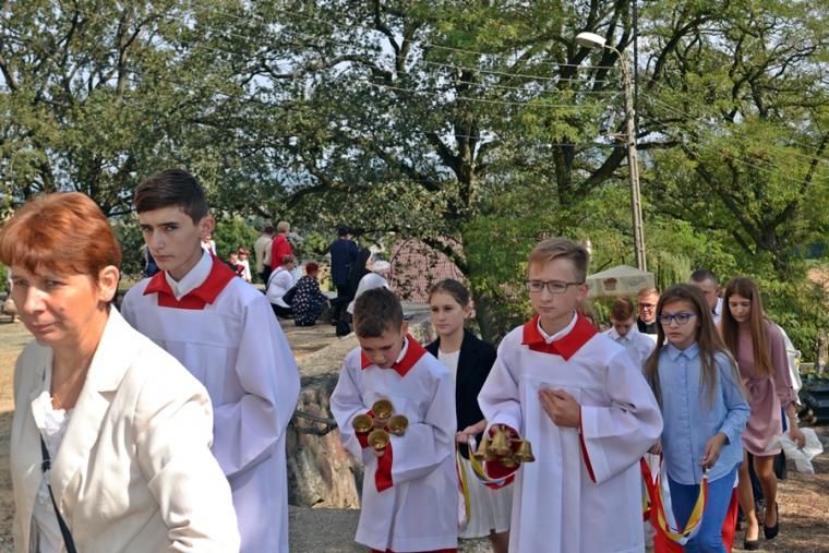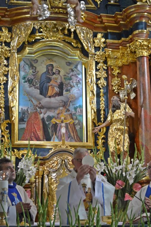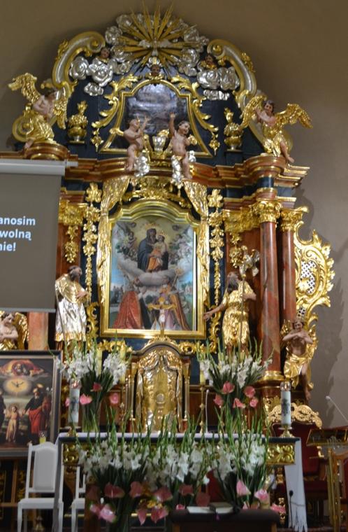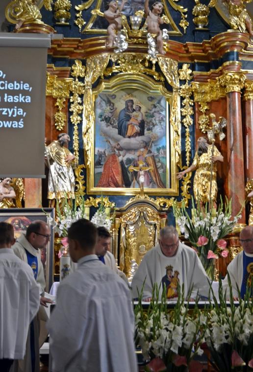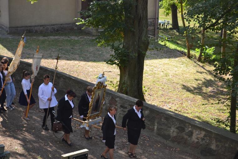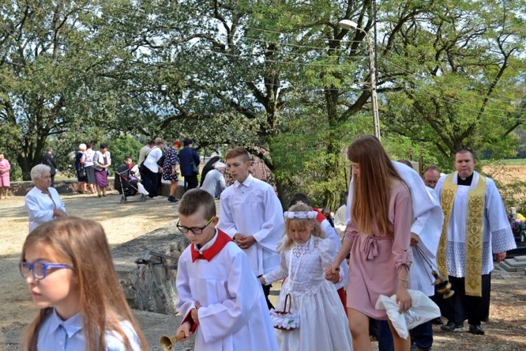 Kończąc kaznodzieja powiedział: „ Rozważając rodowód Jezusa Chrystusa nie zamartwiajmy się zbytnio, że jesteśmy, słabi, grzeszni. Jeśli przychodzimy do Chrystusa Pana i Jego Matki On z nami zrobi wielkie rzeczy. Bóg z tymi, którzy Go miłują współdziała we wszystkim. Amen”. Wiele ważnych słów wybrzmiało w homilii ks. kan. Jacka warto do nich powracać, uczynić je przedmiotem głębszej refleksji, a także rachunku sumienia. Po Mszy Świętej główny celebrans pobłogosławił ziarna zbóż. Następnie przy wystawionym Najświętszym Sakramencie odmówiona została Litania do Matki Bożej i procesja Eucharystyczna wyruszyła ścieżkami wiodącymi wśród grobów tych, którzy kiedyś oddawali cześć Matce Boskiej Kotłowskiej. Po końcowym błogosławieństwie odśpiewana została pieśń „ Boże coś Polskę”. Piękny jest ten odpustowy czas, dobrze spędzać go u stóp Matki Bożej Kotłowskiej, która z takim zatroskaniem spogląda na swe dzieci z ukoronowanego wizerunku.