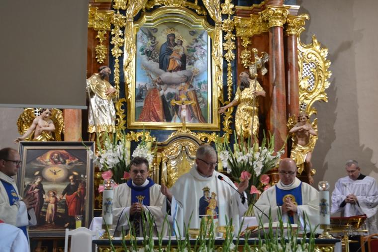 Przed rozpoczęciem Eucharystii słowa podziękowania za przybycie skierował do zebranych w sanktuarium ks. kan. Adam Kosmała. Zachęcał wiernych do przedstawiania Maryi swoich próśb o potrzebne łaski. Podziękował parafianom za przygotowanie kościoła do uroczystości odpustowych, podkreślając, że to dzięki ich zaangażowaniu prezentuje się on tak pięknie. Po odsłonięciu obrazu rozpoczęła się suma odpustowa. Sumę odpustową koncelebrowało czterech kapłanów. Koncelebrze przewodniczył ks. kan. Jacek Stawik, proboszcz parafii Jaraczewo. Współcelabransami byli ks. kan. Krzysztof Ordziniak, ks. kan. Przemysław Talaga i ks. Paweł Wczesny. W czasie sumy homilię wygłosił ks. kan. Jacek Stawik. Rozpoczynając podkreślił, że lektura Pisma Świętego pokazuje,że Pan Bóg chce na ziemi miejsc, w których będzie szczególnie obecny, w którym będą gromadzili się wierni jako lud, jako bracia, jako rodzina. Zaakcentował, że takim miejscem jest Kotłowskie Wzgórze. Przyznał, że sam to miejsce dopiero odkrywa. Podzielił się swoimi lękami, niepokojami związanymi ze wspomnieniami z początków podziału kościoła. Przyznał, że bał się tego miejsca, a jak podkreślił jest ono piękne, przepełnione miłością, bo jest domem Matki. Tutaj, jak podkreślił czcimy Ją, pozdrawiamy, ale także poznajemy, doświadczamy, że Jej życie miało głęboki sens, zostało uhonorowane chwałą nieba i przebywaniem przy Bogu. Nawiązując do przeżywanej uroczystości kaznodzieja przypomniał, że w liturgii wspominamy dzień narodzenia Maryi. Kontynuując powiedział: „ Liturgia jest czymś niezwykłym. Jest działaniem Boga i naszym. My się gromadzimy mając dobrą wolę, coś czytamy, mówimy, wykonujemy biblijne gesty, a Bóg działa i czyni obecnym to wszystko co się już wydarzyło. Dodał, że liturgia dnia dzisiejszego przenosi nas w dzień narodzin, który jest dniem radości i wielkiego szczęścia. Ks. kan. Jacek zaakcentował, że Maryja była jutrzenką, czyli Tą, która poprzedza słońce, Tą, która porodzi Zbawiciela. Nawiązując do słów Ewangelii- rodowodu Jezusa Chrystusa podkreślił, że jest w nim wiele ważnych, cennych informacji. Zawiera on tajemnice powołania. Zwrócił uwagę, że współczesny człowiek żąda świata idealnego. Okazuje się jednak, że w opisie rodowodu Jezusa nie występują osoby, które wcale nie były idealne, nie były święte. Podkreślił, że na początku i na końcu opisu rodowodu są osoby święte: Abraham, którego wiara jest dla nas wzorem i Maryja. Kontynuując kaznodzieja zwrócił uwagę, że my także wpisujemy się w ten rodowód, gdyż Zbawca ciągle się objawia. Ks. kan. Jacek zachęcał zebranych, by podjęli refleksję nad tym jak wpisują się w ten rodowód. Dodał, że dobrze będzie zapytać Maryi, jak wpisać się w ten rodowód. Podkreślił, że Maryja prowadziła proste, zwyczajne życie, w które wpisana była pokora, radości, cierpienia. Jej życie przepełnione było szacunkiem i miłością do Józefa. Kontynuując kaznodzieja podkreślił, że prawdziwym pięknem Maryi jest prawda. Powiedział: „ Bóg jest Bogiem, Ona jest człowiekiem. Wie, że wszystko pochodzi od Boga. Jest pokorną służebnicą”. Zwrócił uwagę, że źródłem Jej piękna było słowo Boże, które rozważała, którego słuchała i które przyjmowała i realizowała w swoim życiu. W dalszej części homilii celebrans z naciskiem podkreślił, że Bóg jest w niebie, nikt z nas nie jest Bogiem. Skierował do zebranych w świątyni pytanie jak ta prawda, że Bóg jest tylko jeden porządkuje ich życie. Tą prawdą- jak podkreślał żyła Maryja, dlatego powinniśmy się Nią zachwycać. Kontynuując powiedział: „Ciągle jesteśmy na jakimś rozdrożu, jesteśmy karmieni różnym rzeczami, różnymi sprawami. Jesteśmy nieraz karmieni dziełami ciemnymi, wypalonymi, pustymi. Stąd wiele beznadziejności”. Podkreślił, że czasy współczesne są największym kryzysem cywilizacyjnym. Zaakcentował, że człowiek współczesny ma tendencję do urządzania świata na nowo, odrzucając Pana Boga. Kontynuując dodał, że jesteśmy uwikłani w ten kryzys cywilizacji i nie pozostaje on bez wpływu na nasze życie. Podkreślił, że fakt iż jesteśmy u Matki Bożej wskazuje, że kroczymy drogą prawdziwą, tą, która zaprowadziła Maryję do królowania w niebie.