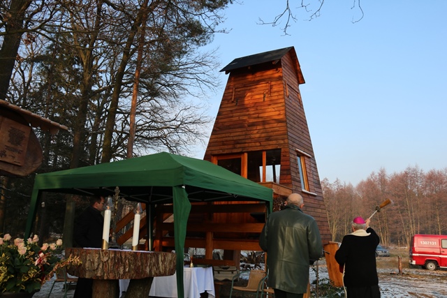 - Moim marzeniem było utworzenie w lesie miejsca kultu religijnego oraz pamięci ku czci leśników i myśliwych, którzy wyrośli z jednego pnia. Z racji obchodzonego Nadzwyczajnego Roku Świętego Józefa Kaliskiego umieściliśmy obraz Świętej Rodziny, a symbolami 100. rocznicy odzyskania przez Polskę niepodległości są rzeźby św. Jana Pawła II i Marszałka Józefa Piłsudskiego – powiedział w rozmowie z KAI myśliwy Józef Bażant z Koła Łowieckiego nr 37 „Słonka” w Dzierzbinie, który dodaje, że w wykonaniu dzieła pomogli mu artyści Tadeusz Jarczewski i Bolesław Białecki.