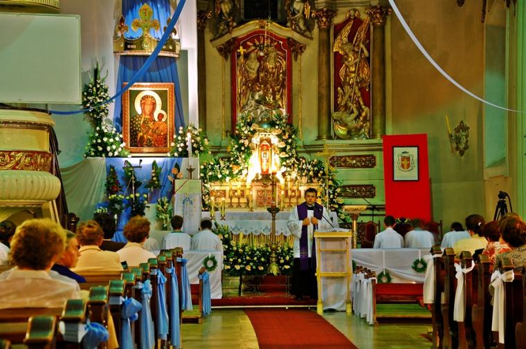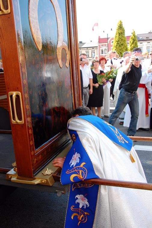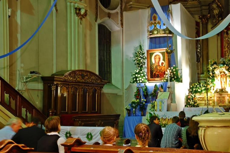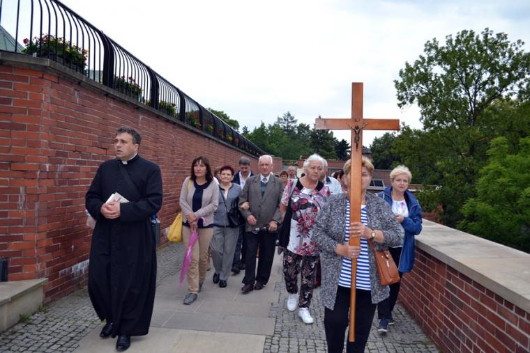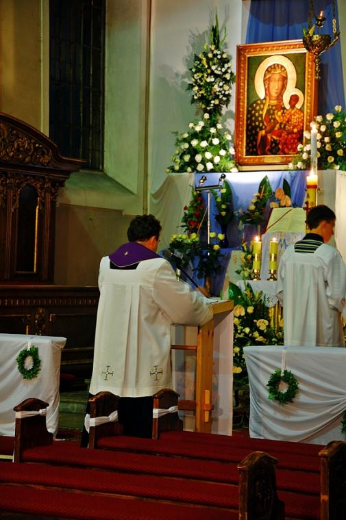 O godz. 16:00 uczestniczyliśmy w odprawianym przed obliczem Czarnej Madonny nabożeństwie różańcowym, podczas którego rozważane były tajemnice światła. Podczas pielgrzymki nie mogło zabraknąć Eucharystii. Uczestniczyliśmy w niej w Kaplicy Cudownego Obrazu, a ks. proboszcz sprawował ją w naszych intencjach. Po Mszy Świętej udaliśmy się na wały, by odprawić drogę krzyżową. Rozważania poszczególnych stacji koncentrowały się na problemie starości. Stanowiły zachętę do przeżywania tego okresu w duchu zaufania i zawierzenia Panu Bogu. Między poszczególnymi stacjami odmawialiśmy Koronkę do Miłosierdzia Bożego. Każdy kto czuł taką potrzebę mógł między stacjami przejąć krzyż. Po zakończonej drodze krzyżowej był czas na osobistą modlitwę i spotkanie z Matką i Jej Synem. Wiele osób w tym czasie modliło się w Kaplicy Cudownego Obrazu, ale także nawiedziło i zatrzymało się w Kaplicy Adoracji. Opiekun duchowy naszej pielgrzymki zachęcał nas, byśmy w tym pielgrzymkowym dniu rozważyli wszystkie tajemnice różańca. Zapewne był to czas, gdy wielu z nas kontemplowało tajemnice bolesne, powierzając Maryi także trudne, bolesne sprawy swoje i swoich bliskich. O godz. 19:00 uczestniczyliśmy w nabożeństwie czerwcowym. W słowie skierowanym do wiernych przewodniczący nabożeństwu Ojciec Paulin zwrócił uwagę na wezwanie Litanii do Najświętszego Serca Jezusowego zawarte w słowach: Serce Jezusa hojne dla wszystkich, którzy Cię wzywają. Nawiązał do kultu Serca Jezusowego. Zwrócił uwagę na obietnice dane Małgorzacie Marii Alacoque dla tych, którzy oddają cześć Jego Boskiemu Sercu. Zachęcał, by w naszych domach znalazło się miejsce dla krzyża, obrazu Jezusa, Matki Bożej, świętych. Gdy w Mikstacie rozległ się dźwięk dzwonów, przypominających o tym, że mamy być, pamiętać, czuwać, my wpatrując się w zatroskane oczy Czarnej Madonny uczestniczyliśmy w Apelu Jasnogórskim. Po Apelu wyruszyliśmy w drogę powrotną, podczas której odmówiliśmy tajemnice chwalebne różańca. To był piękny dzień...