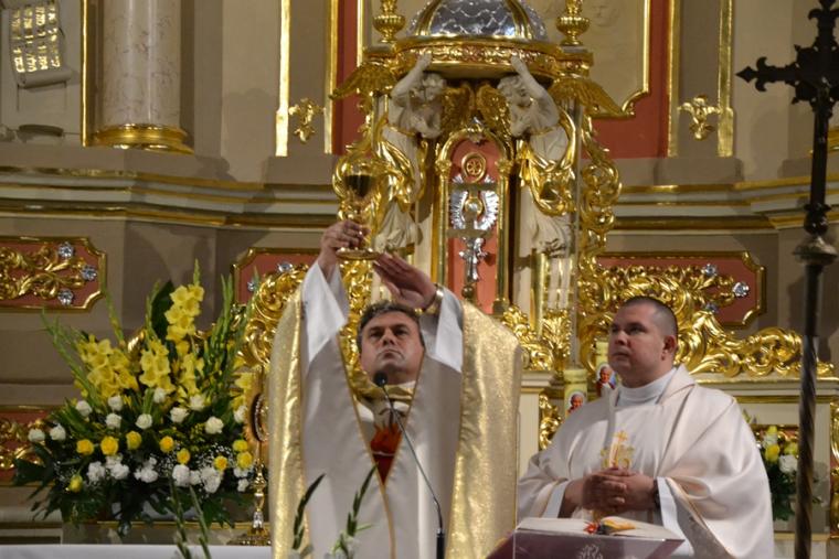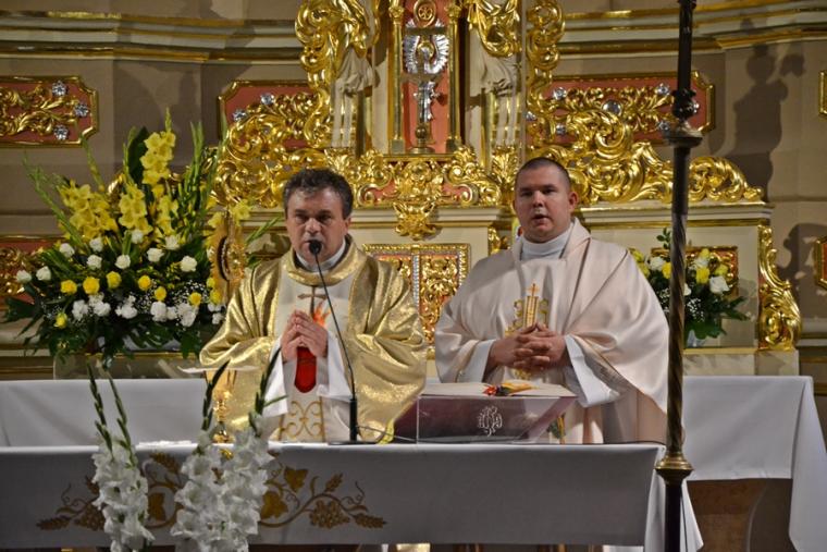 Rozpoczynając homilię ks. kan. Krzysztof podkreślił, że uroczystość Najświętszego Serca Pana Jezusa została ustanowiona na życzenie Pana Jezusa skierowane do św. Małgorzaty Marii Alacoque. Kaznodzieja przypomniał słowa św. Jana Pawła II skierowane do wiernych we Włocławku w 1991 roku: „ Jezu cichy i pokornego serca, uczyń serca nasze według serca Twego. Tak może mówić człowiek do Boga, który stał się Człowiekiem, który jako Człowiek nosi całą pełnie bóstwa i całą niezmierzoną głębie tajemnicy powołania człowieka w Bogu, w tym właśnie ludzkim sercu. Nosi tez w tym ludzkim sercu, na końcu włócznią przebitym włócznią, całą tajemnice ceny, wartości, jaką ma człowiek, całą tajemnicę odkupienia”. Kapłan zachęcał wiernych, by jak najczęściej prosili Jezusa, by uczynił ich serca na wzór Jego boskiego serca i by nie zrywali nigdy przyjaźni z Bogiem. Serca yo najważniejszy nazad ludzkiego ciała-kontynuował celebrans. Bicie serca świadczy o tym, że żyjemy. Podkreślił, że można komuś podarować serce, obdarzyć kogoś miłością. Zaakcentował, że wzorem miłości jest dla człowieka Jezus, gdyż Jego serce zostało przebite na krzyżu za nasze grzechy. Uroczystość Najświętszego Serca Jezusowego jest okazją do dziękczynienia za wielka miłość Boga do człowieka. W dalszej części homilii kaznodzieja wskazał wkład św. Małgorzaty Marii Alacoque w rozwoju kultu Serca Jezusowego. Przypomniał obietnice Jezusa Chrystusa dane za pośrednictwem św. Małgorzaty Marii Alacoque tym, którzy czcić będą Serce Najświętsze: 1.Dam im wszystkie łaski potrzebne w ich stanie. 2.Zgoda i pokój będą panowały w ich rodzinach. 3.Będę ich pocieszał we wszystkich ich utrapieniach. 4.Będę im bezpieczną ucieczką w życiu, a szczególnie przy śmierci. 5.Wyleję obfite błogosławieństwa na wszystkie ich przedsięwzięcia. 6.Grzesznicy znajdą w mym Sercu źródło nieskończonego miłosierdzia. 7.Dusze oziębłe staną się gorliwymi. 8.Dusze gorliwe dojdą szybko do doskonałości. 9.Błogosławić będę domy, w których wizerunek Serca mego będzie czczony. 10.Kapłanom dam dar kruszenia serc najbardziej zatwardziałych. 11.Osoby, które będą to nabożeństwo rozszerzały, będą miały imię swoje zapisane w mym Sercu i na zawsze w nim pozostaną. 12.Przyrzekam w nadmiarze miłosierdzia Serca mojego, że wszechmocna miłość moja, udzieli tym wszystkim, którzy przyjmą komunię św. w pierwsze piątki przez dziewięć miesięcy z rzędu, łaskę pokuty, iż nie umrą w niełasce mojej ani bez sakramentów świętych, a Serce moje będzie im pewną ucieczką w ostatniej godzinie ich życia. Jest ich tak wiele, korzystajmy więc z bezmiaru miłości Serca Jezusowego. Czcijmy Serce Jezusowe zachęcał celebrans. Kontynuując rozważanie ks. kan. Krzysztof zaznaczył, że powinniśmy w troszczyć się o to, by nasze serca były ciche i pokorne. Jednocześnie podkreślił, że pycha stanowi poważne zagrożenie dla naszego życia duchowego, gdyż rodzi się w naszym sercu i umyśle, popycha nas do złych działań, pragnień. Celebrans apelował, byśmy często przychodzili do Jezusa, zwłaszcza gdy jest nam trudno, bo w Jego sercu znajdziemy ukojenie dla naszych dusz. Od Jezusa mamy się uczyć pokory i miłości do Boga Ojca i do człowieka- zachęcał parafian ks. proboszcz.